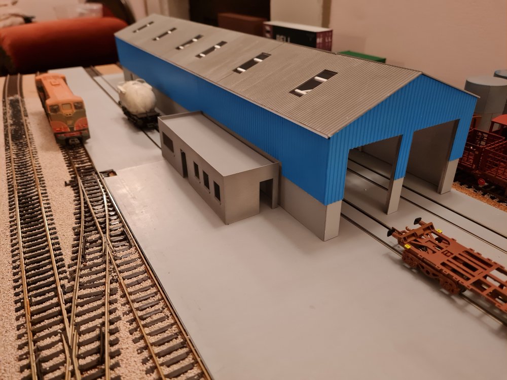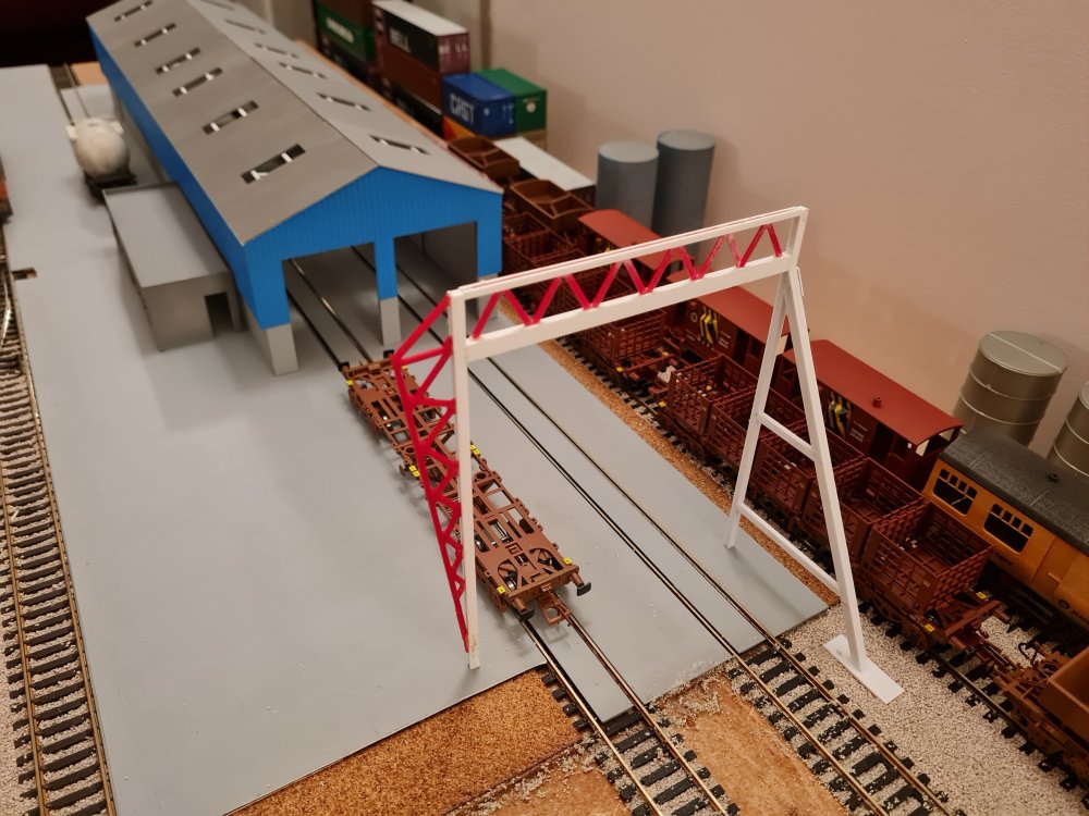 Finally for now, the whole thing is very loosely based on the wagon shed in North Wall. The shed is scratch built and still needs work. The gantry crane is a 3D print by Owen O'Neill of this parish. I've modified it to fit the location. I found it very hard to work with the print material used on this particular item, but that was mostly my impatience and is no reflection on the kit!