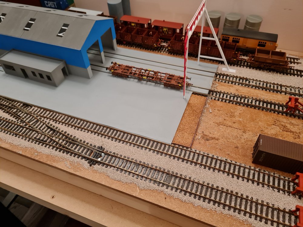 I've been wrecking my head for weeks trying to think of something to put behind the yard as low relief. Specifically, something that would at least be a nod to the East Wall location. I've left a strip of 14cm along the back for this. I was thinking low relief houses, or East Wall Church. The church idea would be kinda cool, but might dominate the whole thing. Whilst playing around this evening I placed some containers, and it actually looks well, and is a simple enough solution. On on the right hand side I'm playing around with the idea of a concrete mix plant. I remember the orange Readymix trucks and plant on the East Wall road beside the fire station, it used to be terrifying trying to cross the footpath across the front entrance! So I'll build that up and see how it fits.