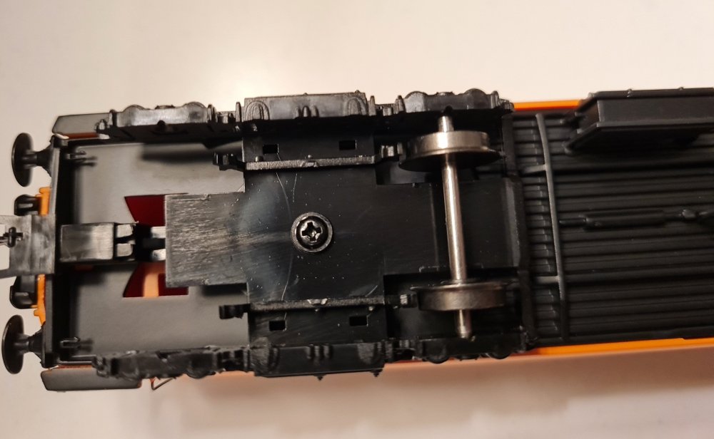 Hi @murphaph Here is a close up of the bogies. Plastic cast, no rotating bearings. There are plastic brake shoes(?) moulded in the correct position up close to each individual wheel, which might foul a 21mm wheelset. However, they are not visibile through the bogie so I don't think they'd be missed if you were to remove them. I've no first hand experience with 21mm conversions, but I think there is plenty of space within the frame for 21mm wheelsets. Edit: bogies rotate independent of couplers