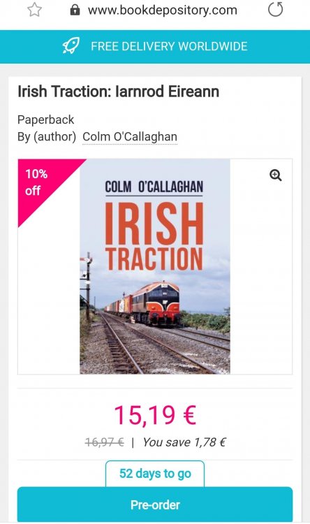 I hope I posted this in the right place.I spotted this new book on Book Depository by well know railway photographer Colm O Callaghan.Book is due in November.