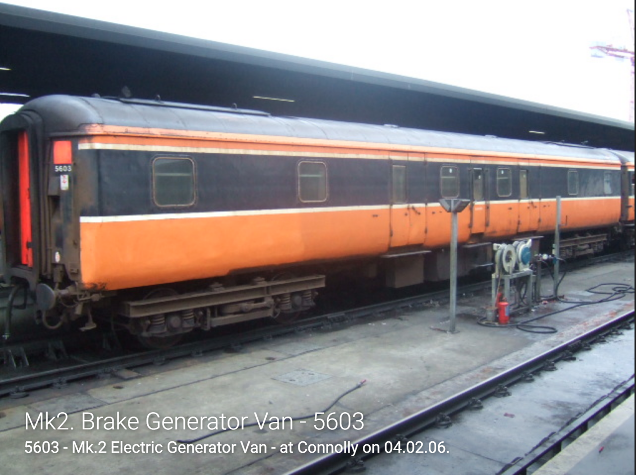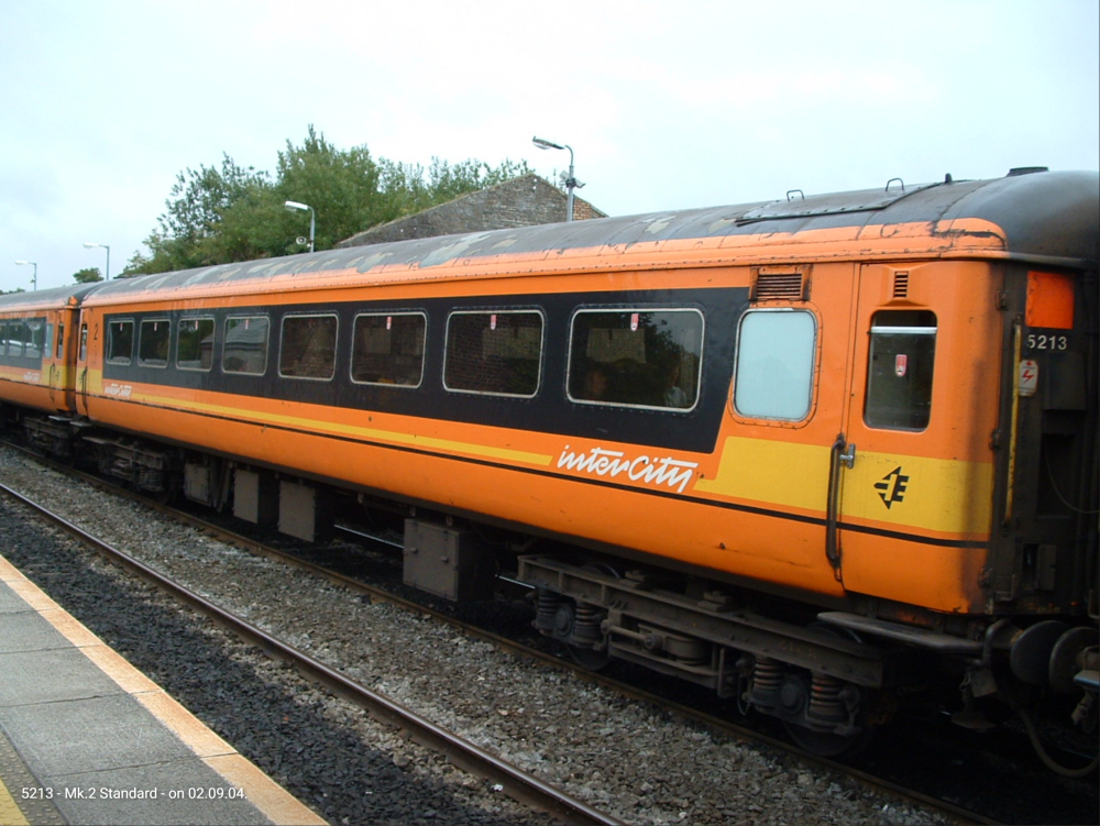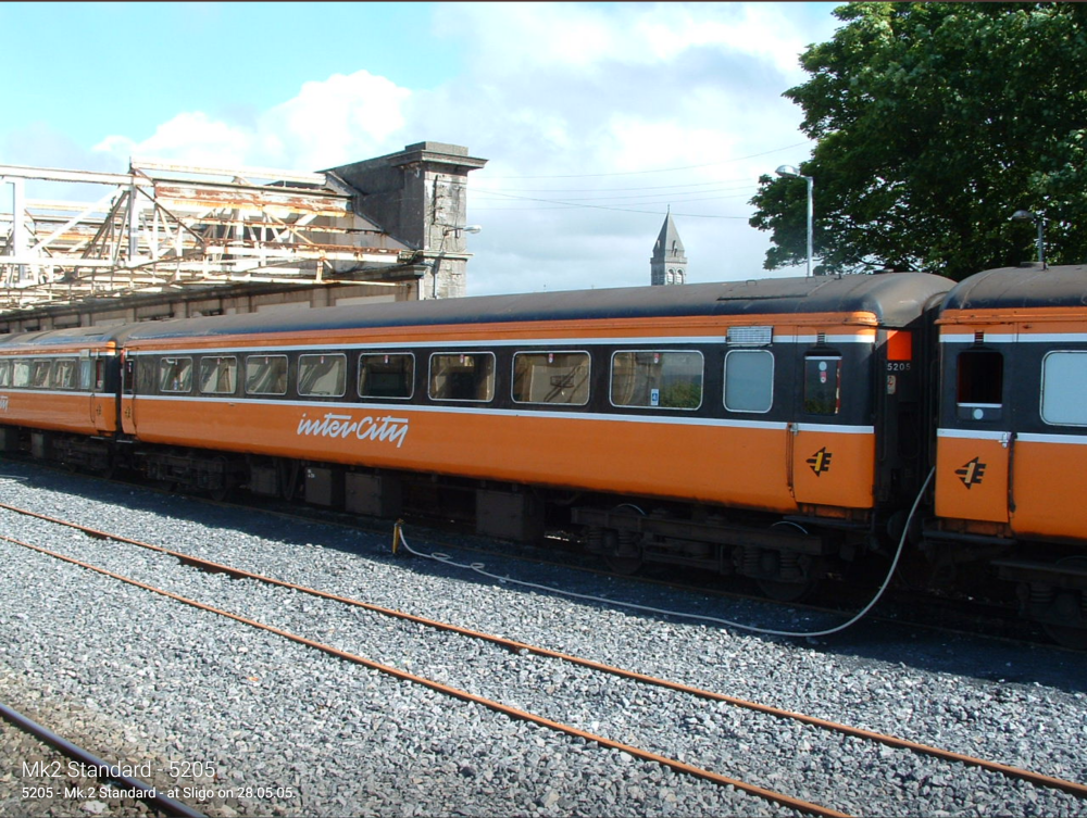 As always, any additional info, corrections or feedback would be greatly appreciated. Mark 2 First Class (51xx) 5101-5106 = 42 seats in total. At some point in the 1990s, all carriages were fitted with standard class seating and fittings. Mark 2 Composite (515x) 5151-5159 = 24 Standard, 18 First (42 seats in total). At some point in the 1990s, all carriages were fitted with standard class seating and fittings. Mark 2 Standard Class (52xx) 5201-5236 = 64 seats. In 2000-2001, carriages 5209, 5213, 5216, 5225, 5232, 5233 and 5235 were refurbished and would wear the "Galway" livery. This refurbishment would include the carriages being completely rewired and treated for corrosion, along with new carpets, seats, curtains, tables, toilet fittings and interior ceiling panels. Mark 2 Restaurant (54xx) 5401-5411 = 26 seats, one wheelchair space. In 1977, 5408 was converted into a Presidential Saloon and was retired in 2011. It is currently on static display at Whitehead Railway Museum. In 2001, 5411 was refurbished and repainted into the "Galway" livery. Mark 2 EGV (56xx) 5601-5611 = Fitted with Two Detroit 8V-71N of 234hp at 1575rpm powering Two International Electric alternators of 160kW. 5601 was the only Mark 2 EGV to have been refurbished. On the 31st of March 2008, the final service used with a rake of IÉ Mark 2s would be the 05:05 Athlone - Heuston service. As of 2025: 5106 (now numbered 304), 5203 (renumbered as 303) and 5408 are currently preserved by the RPSI.