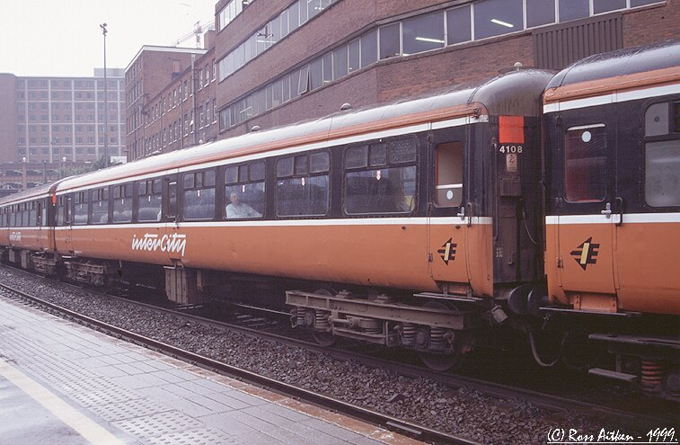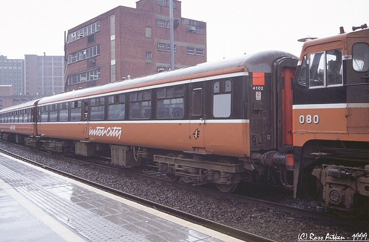 Any corrections would be greatly appreciated. Mark 3 Control Car (61xx) 6101-6105 = Built under license at the Inchicore Works. 6105 was one of the last carriages constructed at Inchicore. They were designed in the UK, with finishing being carried out at Inchicore. The Mark 3s were assembled with parts from BREL. Mark 3 Suburban/push-pull (63xx) 6301-6319 = Built under license in the Inchicore Works. Almost identical to their Mainline counterparts, except for opening windows due to the lack of air conditioning. International Mark 3 Restaurant (6401) 6401 = Ex-BR 99523, renumbered as 6401 in IÉ ownership. It was the only Buffet Standard (BSO) of the Mark 3 International fleet. International Mark 3s (62xx) 6201 = Ex-BR 99521 BFK (Brake First Corridor). 6202-6208 = Ex-BR TSO (Tourist Standard Open). Mark 3 Café/Bar (6402) 6402 = Purchased from the UK in 2004, ex-HST TRFK (Trailer Restaurant First Kitchen) No. E40513 from 1979. Interfleet converted it into "Cafe/Bar" number 6402. It only saw 4-5 years of service with Irish Rail before being withdrawn in 2009. 6402 usually would have worked alongside the Push-Pull Mark 3s on the Waterford route. Mainline Mark 3s (71xx) 7101-7103, 7105-7106, 7108-7132, 7134-7146, 7148-7155, 7158-7164 = Standard Class, 72 seats. 7107, 7147, 7157 = Standard Class with 64 seats, with 7147 having a wheelchair space. 7165-7172 = Composites, 32 1st Class and 36 Standard Class seating. 7104, 7133, 7156 = Citygold vehicles, 48 First Class seats. 7161 and 7162 = Executive carriages. Mark 3 Restaurant (74xx) 7401-7405 = Built by BREL at Derby Litchurch Lane Works. 7406-7413 = Built under License at the Inchicore Works. (Both batches had 29 Standard Class seating) Mark 3 EGV (76xx) 7601-7607 = Built by BREL at Derby Litchurch Lane Works. 7608-7615 = Built under License at the Inchicore Works. Duration of the Mark 3s by type: "Cú Na Mara" Mark 3: 1994-2008 (14/04/08). Regular IÉ Mark 3: 1984-2009 (28/09/09), 2010 (IRRS railtour 24/04/10). Mark 3 Push-pull: 1989-2009.