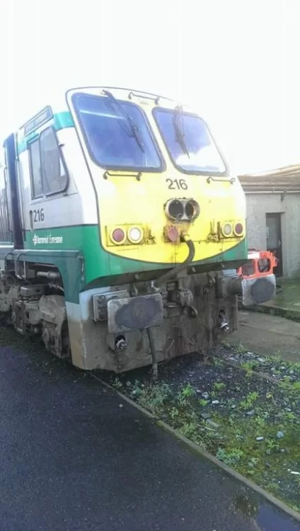 On the 2nd of September, 2010 - 225 "River Deel" was involved in a fatal collision at level crossing XM096, County Roscommon. According to the RAIU report (link below), the tractor may have stalled and remained in the middle of the crossing. 225 appears to have had some damage as a result of the incident. The damage to the loco can be seen in the image below. https://www.raiu.ie/investigations/road-vehicle-struck-at-level-crossing-xm096-county/1542278790784806358/ ...Not sure when this photo was taken, but here's a photo of when 216 was stored at the Inchicore Works... I wonder if she would've ended up like the other mothballed 201s if the Belmond train never happened! -