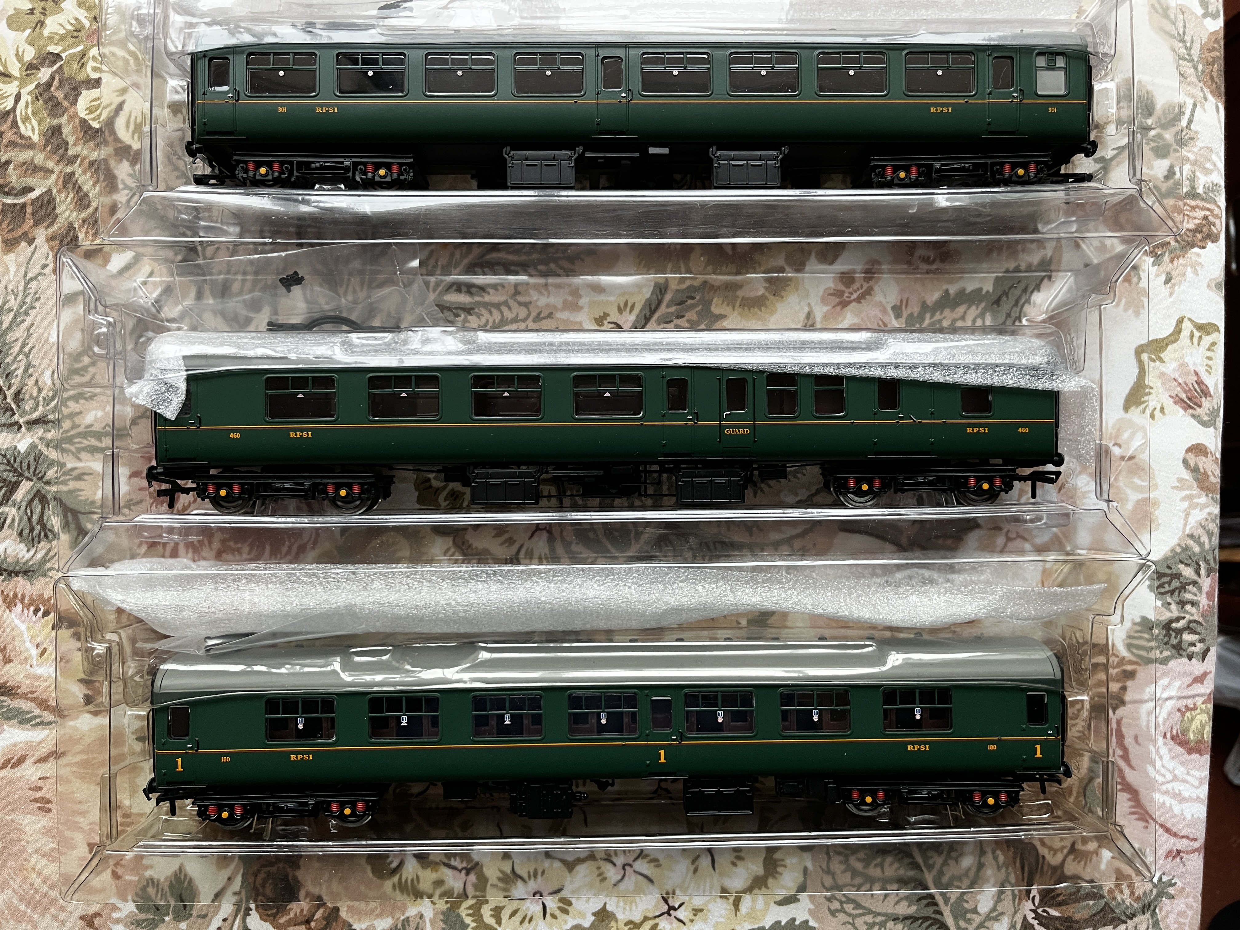 4. More from my "don't really need" collection! Please see previous posts for unsold items. Two sets of these ballast fllats (different packs). Never oout of the boxes! £80 a box (three wagons), delivered at Bangor, or posted at cost to UK. I may be a founder member of the RPSI, but these aren't likely to be run on my layout, so someone who wants them might as well have them. £120 for the three. I took them out of their boxes to let you see them properly. Again, collect at Bangor ....... Also, please see other listings above. Thanks Leslie