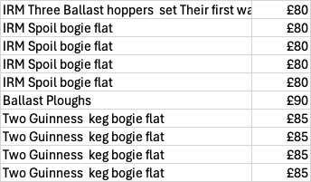 9. Folks I've been crawling around under the layout and bringing out things which were stored! Honestly, I have a small mountain of stuff which I know I will never run. Here's a starter, prices in Sterling and reflect what I paid for them I am happy to accept the equivalent in Euros, obviously. If you're on the Important Island, pick up at no extra cost at Bangor. The balllast wagons have never been out of the box, nor the "Spoil" flats. The Ballast vans adorned a siding on my layout for some years, but have never been run! The Guinness DID have a run around the layout - there's film here somwhere! All were bought new from IRM If you're interested, please PM me. Thanks. Leslie