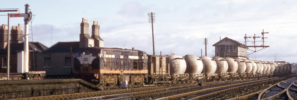 To help my pal John out, even the Ivory-liveried Cement Bubbles ran with a brake van - NOT John's one, but one of the steel ones - but at a distance........ This one has a Wheel and stripey lookout, so his Version 2 is nearest. Maybe I need two? (that is V1 and V2)? B163 on Cement train at Connolly on Sunday 29 September 1968 when Lance King was in Ireland for an IRRS Special to Kilkenny using the RPSI's No.186 Copyright IRRS Lance King Collection
