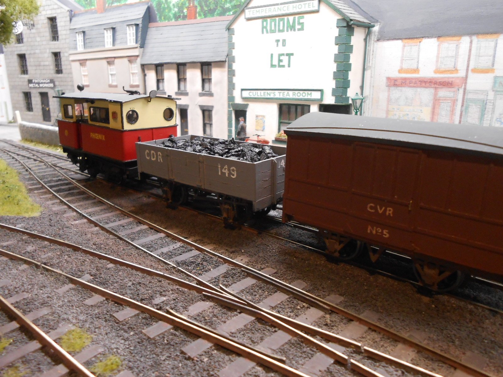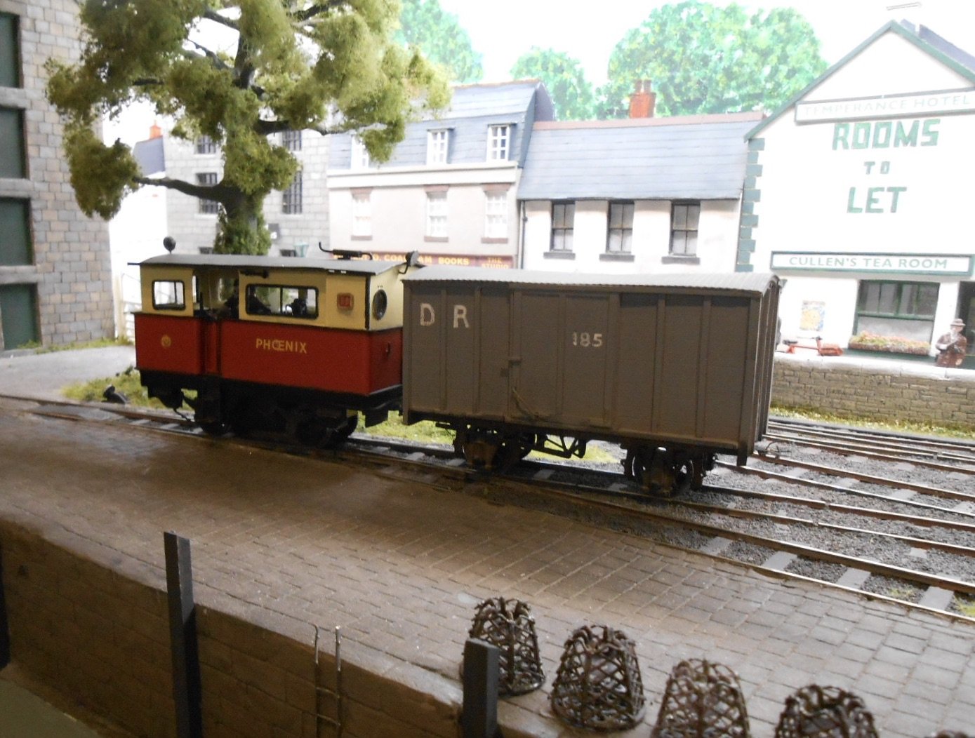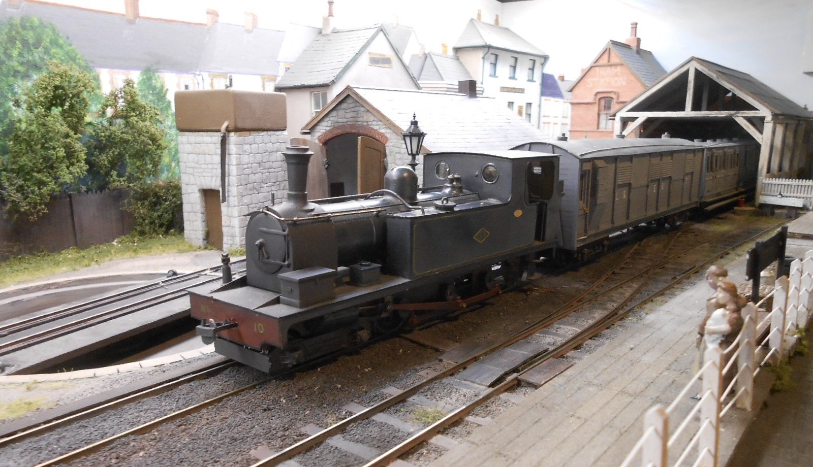 With Swillybegs rehearsals proceeding a pace, thought it time to review the stock and trains that make up the 'new' layout. Fintonagh's last show was over three years ago, so perhaps not surprising that some of the locos needed a bit of attention. Railcar 10 - seemed decidedly sticky and had needed a new [High Level] motor gearbox after its Mashima failed. However, a general clean up and adjustment of pick ups soon had it running smoothly again and it copes well with its new trailer. The Unit - leads the goods train. One wagon shorter than Fintonagh as the new Donegal wagons are longer and bigger that the Clogher ones. Phoenix - has two shunting jobs, the first sorting out the goods, while the Unit rests on the turntable. Phoenix arrives with a single wagon from the front siding, pushes this up to the brake van of the goods and then moves both of them to the train shed. It then runs round and collects a wagon from the front of the out going train, before retiring off scene. In this way Donegal wagons are rotated on successive moves. After turning, the Unit returns to its train, ready for departure. West Donegal Tram - my repurposing of the Clogher Valley 0-4-2Ts. One works the tram, while the other acts as a spare loco, though both are decent runners. The tram comprises three 4 wheel coaches based on Schull & Skibbereen ones. It runs into the front tram platform. After the loco runs round and is turned, it returns whence it came. The Swilly trains The two new locos have caused me a fair amount of grief, but at long last I think I might be getting there. Both have what appeared to be free running chassis, but both stubbornly refused to run well on the track. Thought I'd solved the Barclay 4-6-0Ts problems when I found that two of the outside cranks had worked loose, destroying the quartering in the process. So, the motion was once again dismantled and Loctite 635 used to [hopefully] secure everything. Again. However, running was still erratic and likewise the Kerr Stuart 4-6-2T. The latter is currently running as a 4-6-0T after I removed the rear pony because it kept derailing. This improved things, but still not enough. Salvation came when I realised that both locos were actually not balanced and had too much weight at the cab end, despite both having their tanks packed with lead. Removing the bodies [yet again] and putting heavy brass weights on each end of the chassis suddenly made running much smoother. So, adding a fair bit of weight inside both boilers has made for well balanced locos which now run well. Sigh... Swilly Fish - the 4-6-2T heads this. Just a bogie brake third and a bogie fish van. A simple move: train arrives, loco runs round, turns on the 'table and departs. Swilly Mixed - this move is more involved and suggests that, with their Joint line to Swillybegs, the Donegal and Lough Swilly are co-operating a bit more. The Barclay 4-6-0T arrives with its brake third and two vans, then retires to the turntable. Phoenix now does the shunting, bringing in a new van and removing one from the incoming train. These vans are a mixture of Swilly and Donegal, with the shunting moves similar to the ones on the goods. So, there we are & hopefully ready for Tolworth next weekend. Wish me luck!