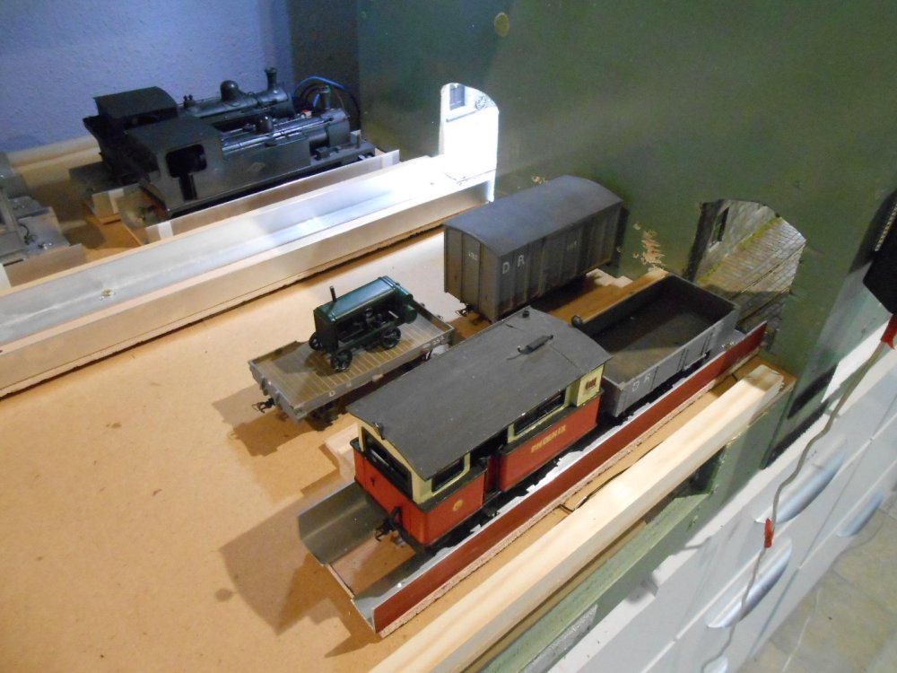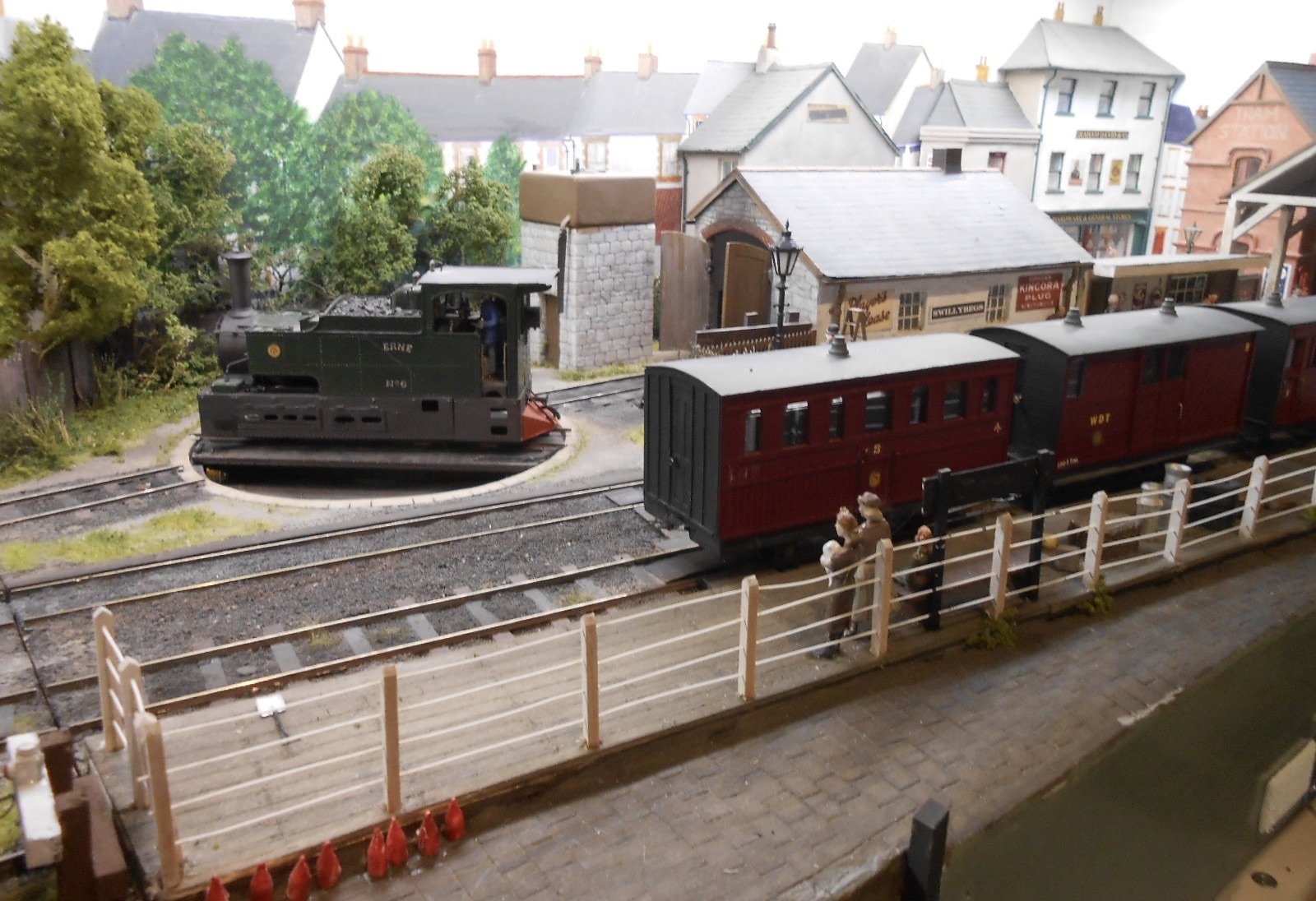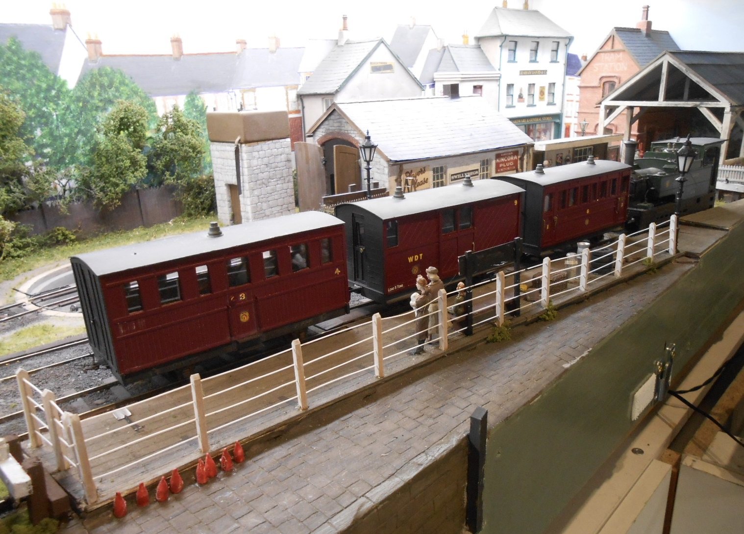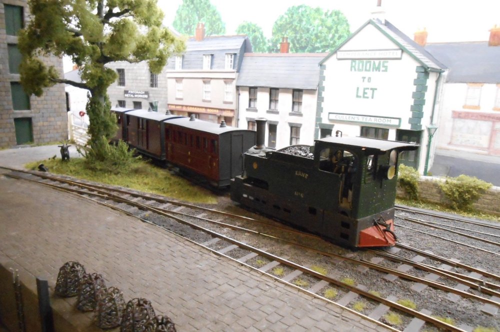 With Swillybegs rehearsals proceeding a pace, thought it time to review the stock and trains that make up the 'new' layout. Fintonagh's last show was over three years ago, so perhaps not surprising that some of the locos needed a bit of attention. Railcar 10 - seemed decidedly sticky and had needed a new [High Level] motor gearbox after its Mashima failed. However, a general clean up and adjustment of pick ups soon had it running smoothly again and it copes well with its new trailer. The Unit - leads the goods train. One wagon shorter than Fintonagh as the new Donegal wagons are longer and bigger that the Clogher ones. Phoenix - has two shunting jobs, the first sorting out the goods, while the Unit rests on the turntable. Phoenix arrives with a single wagon from the front siding, pushes this up to the brake van of the goods and then moves both of them to the train shed. It then runs round and collects a wagon from the front of the out going train, before retiring off scene. In this way Donegal wagons are rotated on successive moves. After turning, the Unit returns to its train, ready for departure. West Donegal Tram - my repurposing of the Clogher Valley 0-4-2Ts. One works the tram, while the other acts as a spare loco, though both are decent runners. The tram comprises three 4 wheel coaches based on Schull & Skibbereen ones. It runs into the front tram platform. After the loco runs round and is turned, it returns whence it came. The Swilly trains The two new locos have caused me a fair amount of grief, but at long last I think I might be getting there. Both have what appeared to be free running chassis, but both stubbornly refused to run well on the track. Thought I'd solved the Barclay 4-6-0Ts problems when I found that two of the outside cranks had worked loose, destroying the quartering in the process. So, the motion was once again dismantled and Loctite 635 used to [hopefully] secure everything. Again. However, running was still erratic and likewise the Kerr Stuart 4-6-2T. The latter is currently running as a 4-6-0T after I removed the rear pony because it kept derailing. This improved things, but still not enough. Salvation came when I realised that both locos were actually not balanced and had too much weight at the cab end, despite both having their tanks packed with lead. Removing the bodies [yet again] and putting heavy brass weights on each end of the chassis suddenly made running much smoother. So, adding a fair bit of weight inside both boilers has made for well balanced locos which now run well. Sigh... Swilly Fish - the 4-6-2T heads this. Just a bogie brake third and a bogie fish van. A simple move: train arrives, loco runs round, turns on the 'table and departs. Swilly Mixed - this move is more involved and suggests that, with their Joint line to Swillybegs, the Donegal and Lough Swilly are co-operating a bit more. The Barclay 4-6-0T arrives with its brake third and two vans, then retires to the turntable. Phoenix now does the shunting, bringing in a new van and removing one from the incoming train. These vans are a mixture of Swilly and Donegal, with the shunting moves similar to the ones on the goods. So, there we are & hopefully ready for Tolworth next weekend. Wish me luck!