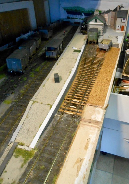 In a land full of fine pubs and bars, that is praise indeed! A bit more work has been done on the Belmullet project & have also included a picture of the new island platform with its turnout to the end loading dock. The wiggly tin barn and signalman's cottage have been temporarily put in the new settings - the aim being for one end of each building to help mask a baseboard join. The other picture is of the site of the loco shed. Managed to find a sheet of good quality 3mm plywood, which will form a sub base on to which the shed will be built, including the track & screwed to the baseboard when finished.