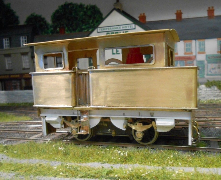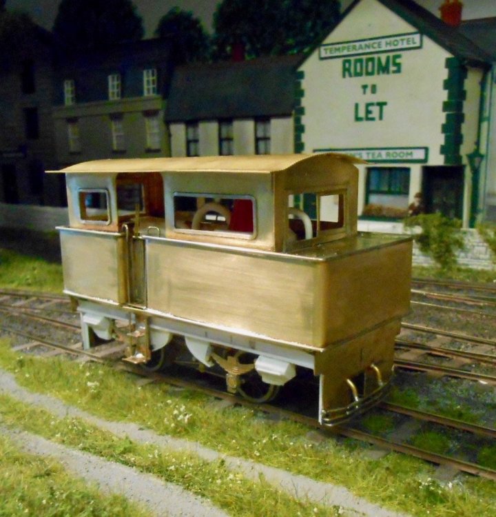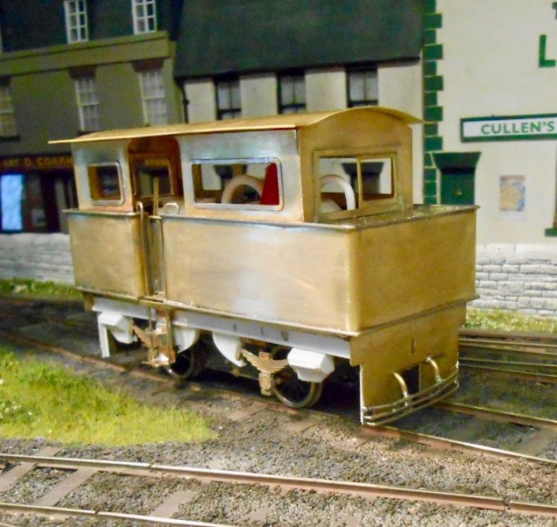 More work, and some rebuilding, for the tractor. If nothing else, the previous photos have showed that I was not born with a silver soldering iron in my hands! Ok, so the photos on a laptop screen make the model at least twice as big as it is, but some of that work looked decidedly scruffy. Some elements were plain wrong too. Not entirely my fault, although as ever, the old adage of measure twice, cut once, applies. However, photos do help with 'proof reading' and highlighted a couple of problems with the model, apart from the scruffy soldering. Firstly, one of the upper sides, with a longer window, wasn't level, so some tweaking [using the RSU to melt the solder joint] was required. Not too bad as it turned out, but more of a problem was how wrong the under frame looked. The problem boiled down to using Worsley etches for the spring/axlebox mounts. Checking with photo's and Roger's drawing showed they are too deep and too short. So, off they came, with new ones made up plasticard as before. This closed the gap between the mounts and made the whole under frame look/sit better. The awkwardly shaped sand boxes came next [plasticard], after which some basic brake gear was added. Unfortunately, the cast chassis is rather obvious but, along with the missing chain drive, I am going to have to live with that - at least for now. The fenders had been causing many a furrowed brow, so what I've added is more of an impression that anything accurate. It would be a major micro engineering job to fabricate them as per prototype. Look at the B&W photo to see what I mean. I've also had to make cut outs for the Kadee couplings. This morning, had a go at the interior. The windows are big enough for there to require an impression of the boiler, cylinders, controls and piping. These have been cobbled together from odds and ends. Lacking any precise detail, I've simply gone with a general impression and once the roof is on, hopefully this will be ok. Other work has included adding pick ups [phosphor bronze wire] and connecting up the motor. Test running shows that with my Gaugemaster hand held controller, running is slow and smooth enough for the shunting duties the model will be required to do. A bit more cleaning up, then apart from the lights, it will be off to the paint shop, about which not much to say, as it was grey. Am thinking of naming it 'Fintonagh'. The original never had name or number, so if it had survived to work my station, then that makes the name appropriate. The roof is not fixed yet, plus there is the chimney and water tank filler to add too.