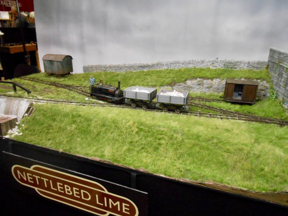 Spent a very pleasant morning there today [once I'd dried out from getting soaked just walking from the car park that it is], with the usual mix of very high standard layouts. All manner of scales, gauges, prototypes and periods, with a great selection of traders too. Stand out for me was a new, 16mm scale working diorama from Giles Favell, of radio control road vehicles fame. Giles has not been on the scene since Covid, so it was great to see him back. A large, but simple display involved an electric powered, live steam, quarry Hunslet, with a couple of side tipping chalk wagons. These were unloaded, via a basic [but prototypical] ramp [far left on the photo], while the loco's driver was able to look around as it progressed across the scene. Giles had another animated figure which could wave its arm too. All rather splendid and very engaging. A large 2mm scale layout also caught my eye. Called St Ruth, it featured some very clever compressed & half/low relief back scenes.