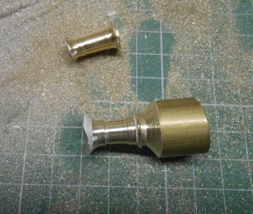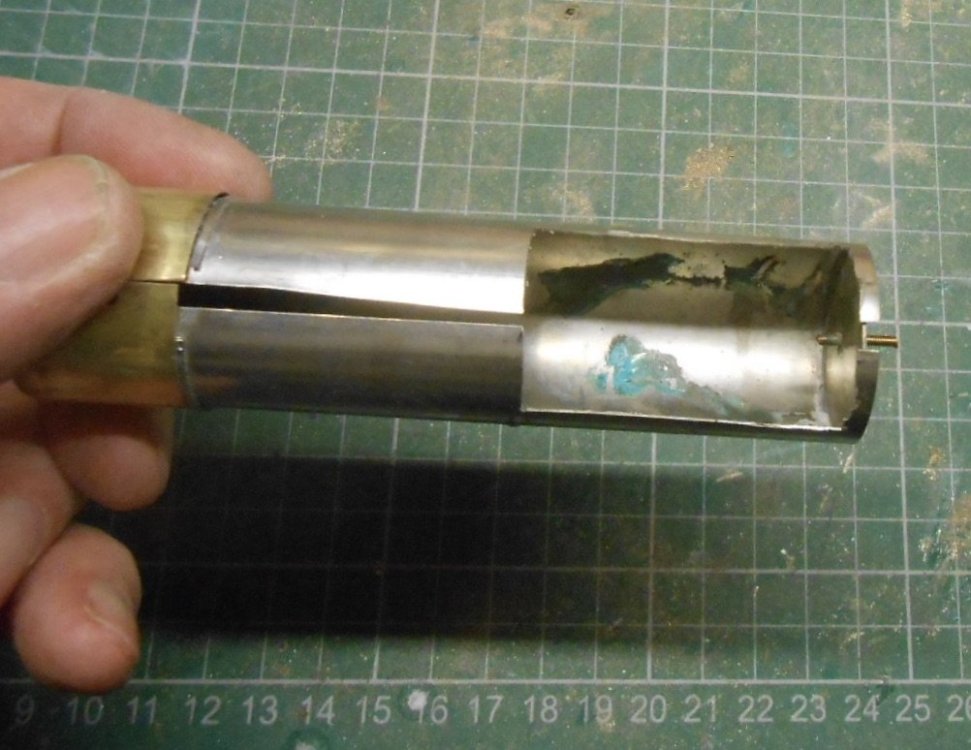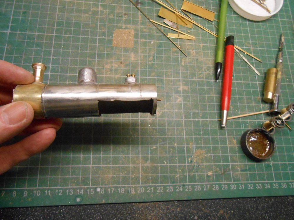 Slow, but steady progress this week, adding most of the remaining Worsley etches [cab steps and sand boxes], then making the major boiler fittings. I also had to cut a section out of the boiler, so it would slot over the motor-gearbox. Dome, safety valves and smokebox door, all came [to greater or lesser degrees] from the spares box. As a kit builder for many years, it is amazing how many bits you accumulate, though I've no longer any idea which kits they came from! The smoke box door seems about right for two of the four Barclays - the other two had a thicker version with the brackets much closer together, but beggars can't be choosers and I found a suitable 'dart' too. A point to remember here is that one of the handles should always be pointing at six o'clock. The dome is a white metal casting that was the right diameter, but just needed shortening a little, while for the safety valves another casting had the valves cut off and replaced by two brass castings. A curious thing about both items is that, by the 1940s, they were no longer is the positions indicated on the drawing - both having moved forwards along the boiler. Annoyingly, this meant moving the boiler bands to accommodate them. Not sure if they are in the exact position, as I don't have side on view of the loco, but three quarter views enable you to line them up with the driving wheels, so this is what I have done. No luck in sourcing a chimney, so out came my micro lathe and some round brass bar. My first attempt turned out to be too slim, though it may well be adaptable for one of the Swilly 4-6-2Ts I want to build. Came close to making a bit of a Horlicks on the second attempt too, but managed to rescue it via the application of some car body filler and then using various files in the lathe to get the shape right. After, a lot of work with a half round file to get it to sit nicely on the smokebox. As per my usual practice, all these fittings are fixed with 5 minute epoxy, which is ideal in terms of getting the positions right.