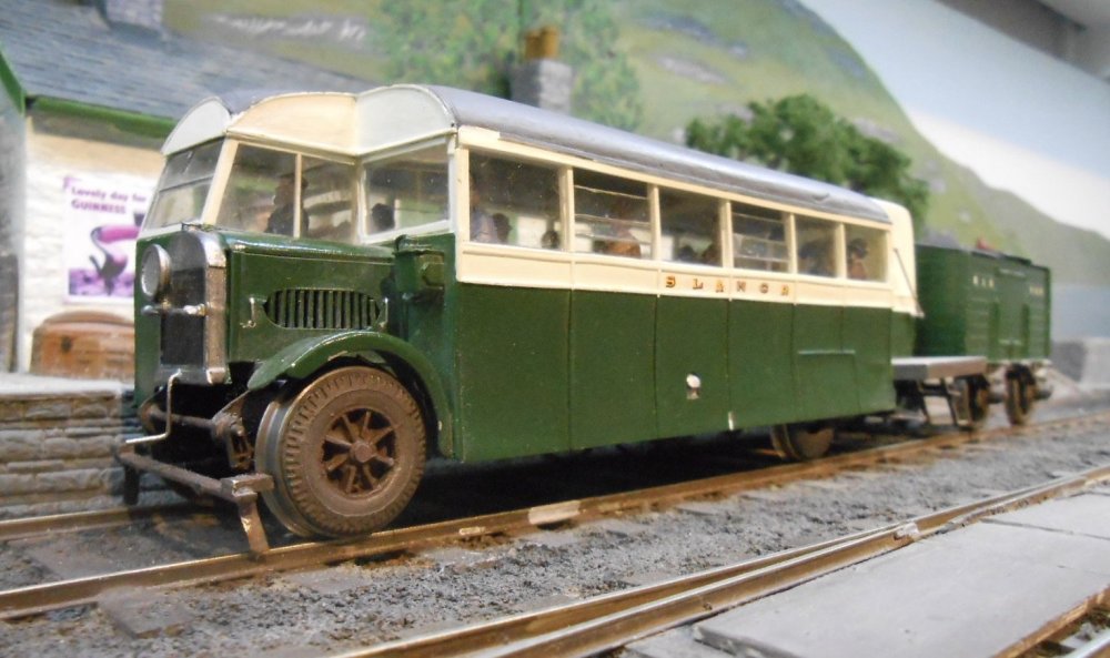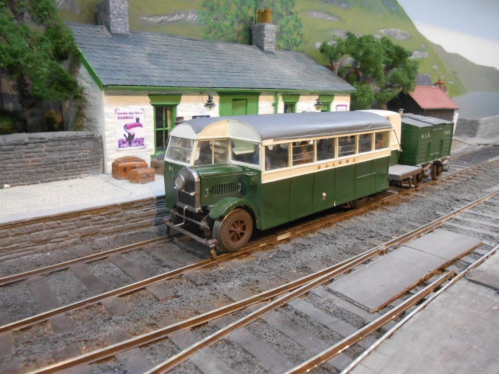 While awaiting a verdict on the crane shuttle unit, have continued to work on layout presentation: lighting, pelmets, display notes & so on. Indeed, an opportunity has arisen for a trial run in two weeks time as it is the 1940s weekend at Chatham Historic Dockyard, so have volunteered to show NPQ on the Sunday [10th September] & have been given a space in the main cafe. Given that this is not a model railway show, hopefully that means a bit less pressure in terms of a public debut. Hopefully, it will also be a chance for a couple of my operators to experience the new AJ couplings, while a bit of practice in loading up the car, setting up and so on will not go amiss either. If the shuttle unit can't deliver, then I'll wire the crane track to the main controller, so a bit of trundling back and forth should still be possible. Hopefully the 'to do' list afterwards won't be too long & there will still be a month to go before Uckfield. Was wondering whether to take the 1950s or 1900s stock with me, but given it is a 1940s weekend, then the former seems more appropriate. Below is Railcar 2b - very much from that era. For those not familiar with Arigna Town, I used the Alphagraphix card kit as a template to scratchbuild the model in plasticard on a nickel silver chassis. The 'Howden-Meredith' patent wheels are simply Slater's wagon wheels with a slice from the tyres of a Corgi Liptons Tea Van.