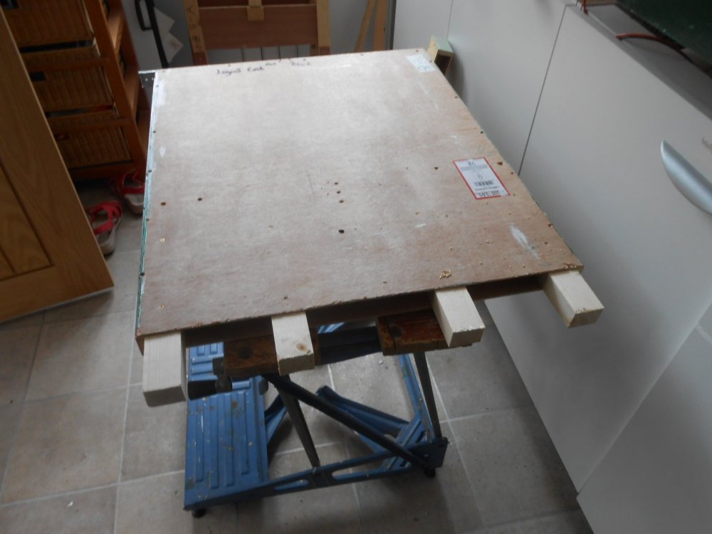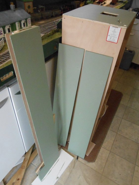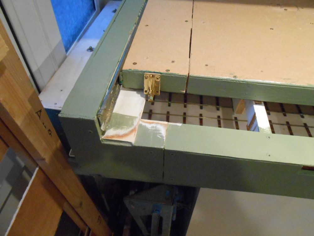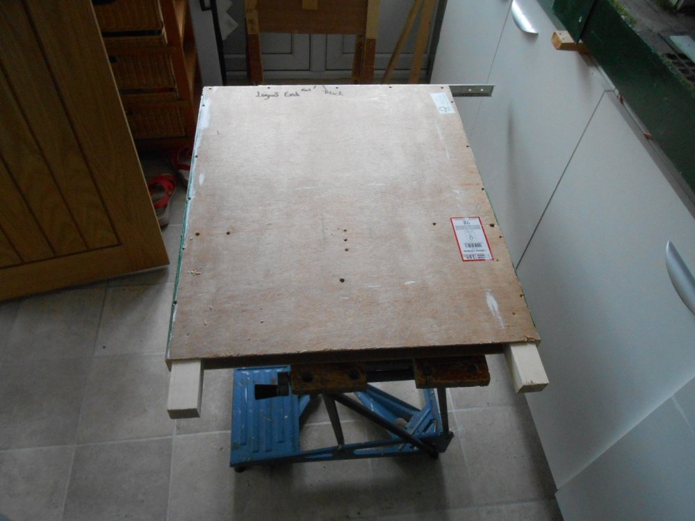 So, to the fiddle yard. I built it around ten years ago. The frame is ply and softwood sandwich type - two pieces of 4mm ply either side of 12mm softwood blocks. Very robust, but at around four feet long, it is rather heavy, especially when it had integral legs attached. The train table detaches for transport - just as well, for as it is made of 12mm mdf, that would add even more! It is however, based on a really clever idea [not mine, by the way], as within the main frames is a section that slides from side to side. The track table sits on top of this and when the sliding section is pulled right out, the former can be rotated, which means that there is zero handling of trains and stock. The train table is 42" long and has seven broad gauge tracks in its 24" width. Compare that to just four narrow gauge tracks on Fintonagh's fiddle yard turntable. The idea is that NPQ's fiddle yard is shortened to 39" [one metre], meaning it will fit across the boot of my car. Later, a narrow gauge track table will be built, so it can be used with Fintonagh, when that eventually goes out again. So, what to do? Starting with the main frames, apart from their weight and length, they are also much deeper than NPQ's baseboards. However, by cutting out sections of the ends and cross beams, I am now able to slot the board over the two longitudinal beams that sit on the trestles. Chopping out 17cm of length seemed a bit drastic at first, until I realised that if I made two cuts, either side of one of softwood centre pieces, I could then join the fames together again with a new centre piece, in this case made of 12mm ply. Glued and screwed in place, the frames are every bit as robust as they were before. The sliding table had been removed to do this, simply by removing two screws from each end. The table itself is hollow, with 32mm square softwood ends [and one cross piece] and 32x12mm sides. A 4mm ply sheet makes the base, with a sheet of hardboard for the top. To shorten it, I cut out a 17cm section from one end and then used 32mm square wood slotted inside to fix the two sections back together. So far, so good. However, when I tried the rebuilt fiddle yard on the support beams and trestles, I found that when I slid the table out to one side, the weight on the track table caused the whole thing to tip over. Not good - especially as this was without the weight of seven trains as well... After muttering a few words like 'bother' and 'oh dear', on went the thinking cap & I decided the best option was to bolt the fiddle yard frame to the beams, with 100mm M6 bolts and wing nuts. This seems to work ok, though for extra security, I may also bolt the beams to the trestles. A bit of extra work when setting up, but better than seven trains of hand made stock landing on the floor... The final picture of of a new toy, namely an automatic shuttle unit to power the mobile crane on the quayside. Hopefully will be able to report on that soon.