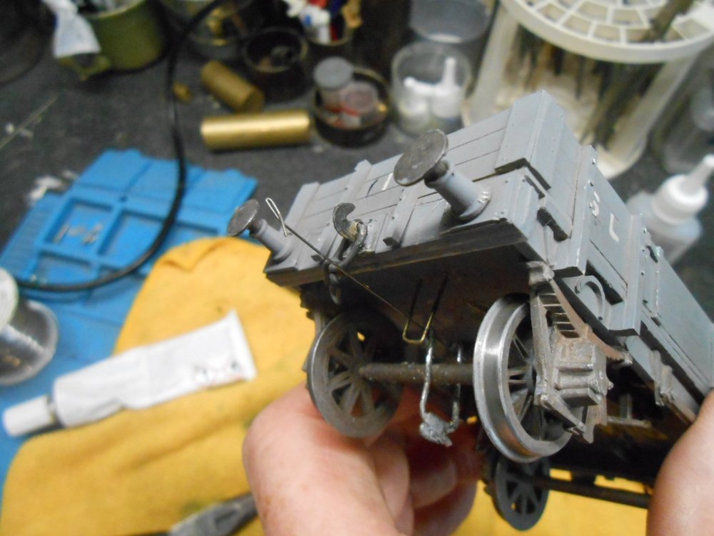 Much ado about mundane stuff lately, with electrics to the fore. Sadly, the shuttle unit hasn't performed & am awaiting a replacement. Am as sure as I can be that I installed it correctly, but for some reason there was no power going to the track - or at least my multimeter was showing just 0.4volts on the output terminals of the unit. Tried all the trouble shooting options, while in using my old H&M Clipper, the crane and several other locos could all run up and down the isolated section of track, so must assume the problem lies with the unit itself. All a bit frustrating, especially as I'd taken the trouble to wire in an on/off switch [DPDT slider], so that, once set up, the shuttle unit can work the mobile crane while a new train is set up from the fiddle yard. You can see the slide switch in the photo above, which also shows an extra push to make switch for a fourth uncoupling magnet. This is sited on the left baseboard & enables wagons to be uncoupled from the rear of an incoming train and shunted to the right hand siding. Looks like a bit of tidying up needs doing to the paintwork around the control panel! The four red buttons are for the electro magnet uncouplers, while the two toggle switches operate the crossover points at each end of the loop. Top left is a push-pull 'button' which works the starter signal [by wire and cranks], while there is also the socket for the controller and the afore mentioned slide switch. The whole panel is just 15cm x 4cm by the way. The reason for the electrics is to get on and do some more test running, especially as I've decided that common sense must prevail when it comes to exhibiting NPQ. In Belmullet's one and only show at Uckfield three years ago, I wanted to display as much of my stock as possible. However, 7mm stock takes up a lot of space & I've resolved to keep things simpler from now on. Trains are shorter on NPQ too and though it would be nice in some ways to have a range of shunting moves, Fintonagh has taught me that a limited range of moves will keep visitors happy, so long as everything runs smoothly. Hence, alternate trains will be little more that 'out and back', with the loco just running round. Hopefully, with hands free remote uncoupling and the crane shuttling back and forth between moves, this should be enough to maintain interest for both operators and observers, while there is certainly variety in the trains themselves, with at least 14 different options available, over the 1900s and 1950s periods. A small, but important key to the Alex Jackson couplings working well seems to be a U shaped piece of wire, acting as a 'limiter', when the magnet pulls down on the actuating wire. Without this limiter, the actuating wire is libel to catch on the magnet, so requires some careful adjustment - hence more testing... Meanwhile, the Acla is now firmly screwed to the baseboard and the right hand crane is likewise fixed in place - meaning two substantial boxes are no longer required for transport, and likewise two things less to set up and put away come show time. Believe me - every little thing counts when it comes to minimising work on the day.