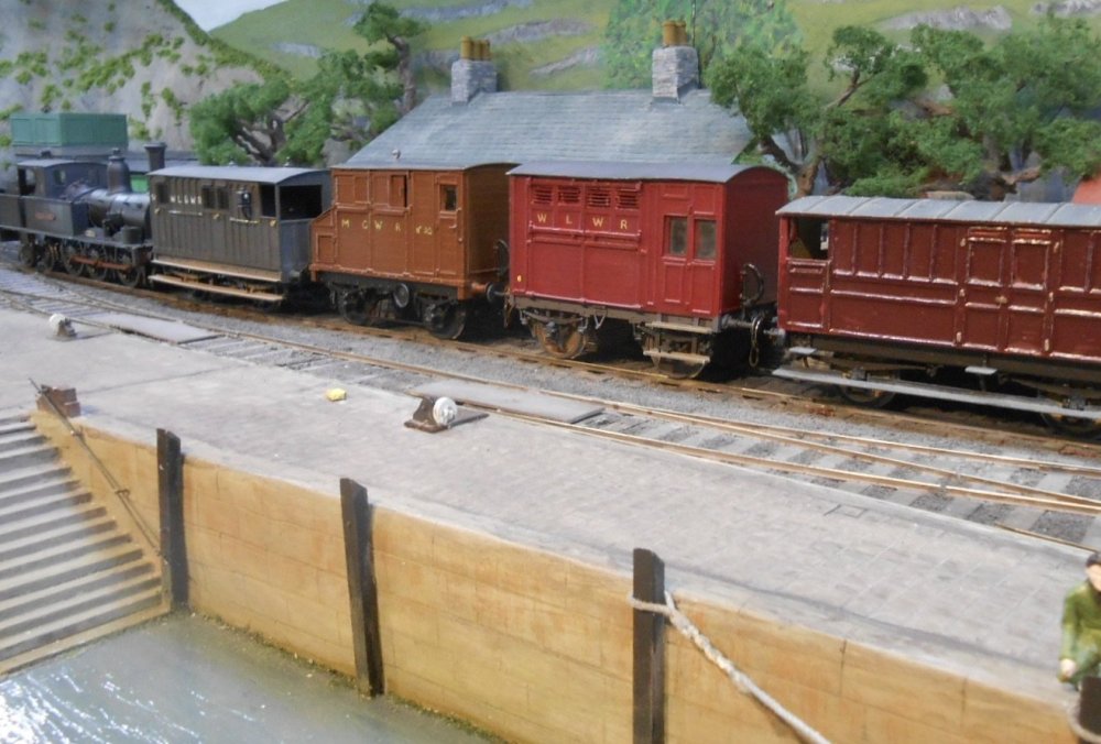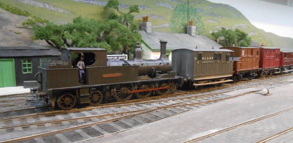 Back to testing on NPQ - or in other words, playing trains. And why not, though it is a very important part of getting a layout ready for exhibiting. By and large, things are working well, though the Alex Jackson couplings still need practice. I've been concentrating on the early 1900s trains & have found a few changes have been needed. Losing the right hand [pier] fiddle yard has meant cutting down the GSWR goods. The train itself remains three wagons and a brake, but instead of swapping these for three different ones from the pier, instead, just a single van is dropped off/picked up in the right hand siding. My F6 2-4-2T [Alphagraphix kit] replaces the 101 0-6-0, because the latter doesn't like shunting into that siding and so is now with the two coach passenger. The photos show the moves involved - after arriving, the loco uncouples, runs into the headshunt, runs round and picks up the brake and rear van from the train. The van goes in the siding and the brake in the headshunt. After, the loco runs round again, pushing the remaining two wagons back to the brake, ready for departure. All uncoupling is remote and is about 90% successful at the moment - so still a bit of work to do. Losing the right hand fiddle yard has meant there were several nice wagons going spare, so have made up a 'horse special' comprising WLW and MGW horse boxes sandwiched between Dublin & Meath and WLW brake vans. Sligo Leitrim 0-6-4T 'Fermanagh' will haul this train, though at the moment several couplings need changing for it to work.