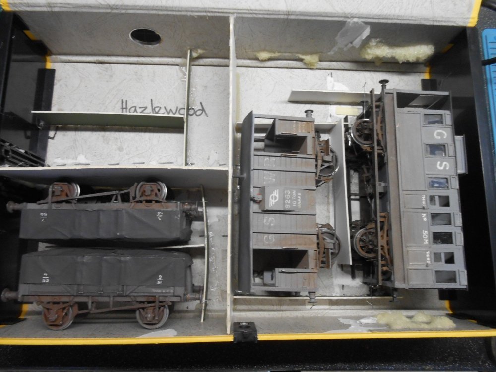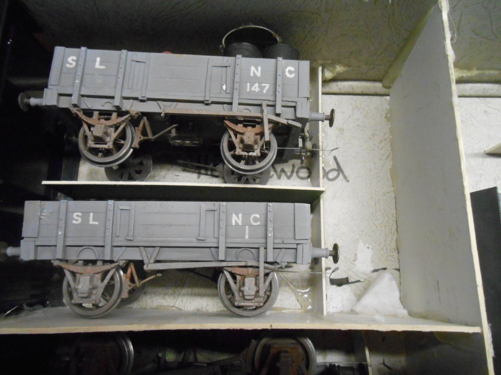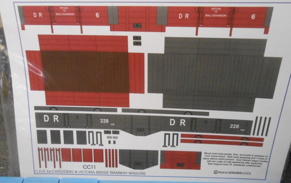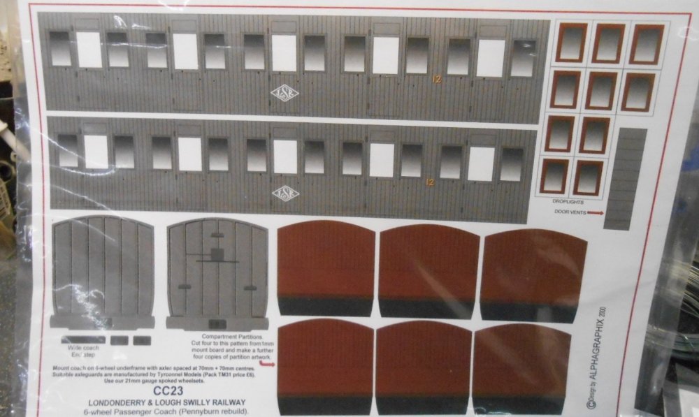 It's been quite a few weeks, but I've finally finished fitting all the Alex Jackson couplings to the stock that needs them to operate Northport Quay. Bending 64 pieces of steel piano wire doesn't seem that much work [and indeed isn't], but fitting them, along with testing has certainly taken a lot of time, while all my stock boxes have needed adapting to protect the coupling wires while travelling to shows. There is still more testing to do, in order to fine tune things, but [fingers crossed], the basic moves of running a train into the station, stopping, then setting back slightly to uncouple the loco before running round, seems fine and this is the case for about two thirds of all trains. There are four goods trains which have rather more complex moves and it is these that will no doubt need more practice in the coming months. Talking to Gordon Gravett, who helped me with Fintonagh at the recent Nailsea show, found he uses a 15 volt transformer to power his electromagnets on Pempoul and Arun Quay, so have invested in one myself to replace the 12v plug in I currently use. The pictures below show one of my stock boxes [actually an A4 box file], newly divided up for one of the goods trains and showing the pieces of thick card being used to protect the coupling wires. I mostly use these box files for rolling stock, with 'Really Useful Box Company' plastic containers for locos in twos and threes, depending on size. So, what next, I asked myself? Northport Quay now needs to have its presentation sorted & was pleased to discover that I should be able to reuse the pelmets, lights and fascias from Belmullet's sole outing, while NPQ was designed to use the beams and trestles from Fintonagh. Just as well, because storage space in my workshop is ever more limited... There are however, a few other things in the pipeline - the E class 0-6-0T I mentioned in my Irish Models thread and then a host of goodies for later in the year to start re-imagining Fintonagh as a Swilly/Donegal branch. For this, I've got some of the Alphagraphix card kits of Swilly coaches and Donegal wagons, plus a couple of railcars [all bargains at just £3 each], but in mentioning my next project to proprietor Roger Cromblehome, he not only found some white metal chassis for the coaches, but other stuff as well, including Donegal Wagon chassis, three open wagon kits and even a drawing for the chassis of the Andrew Barclay 4-6-0T: the importance of the latter being that Worsley Works do a body kit in 7mm scale! So, having spent my entire model making time with never more than a couple of unmade kits in store, I now have loads - itches that are going to need scratching! A few examples are shown below: I use the card kits as drawings to scratch build models in plastic, or make my own resin castings if multiple examples are needed.
