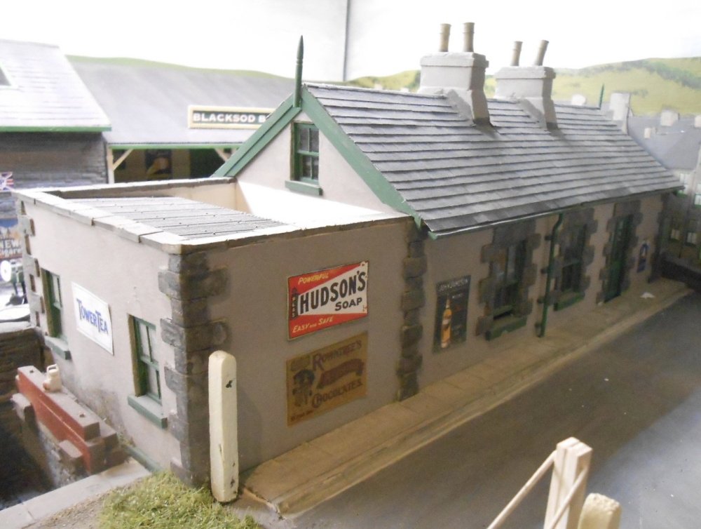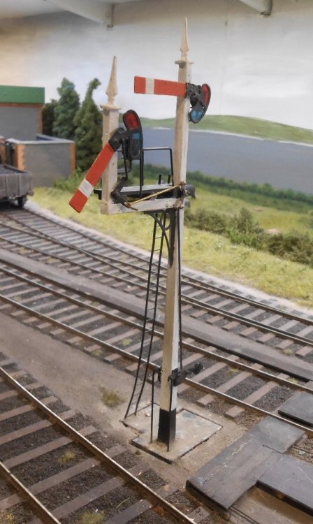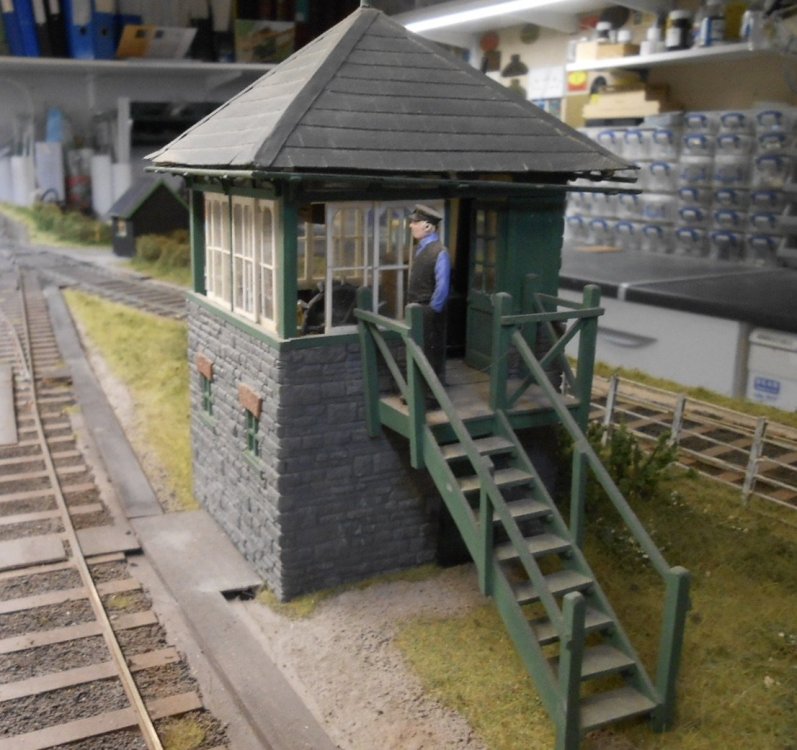 Before moving on to narrow gauge stuff, thought I'd include some of my broad gauge infrastructure, starting with signals. I found the three doll signal [controlling three level crossings] on the Sligo Leitrim particularly interesting & there were most of the parts required to make it from Wizard Models, while there are various useful books available to help too. It controls the entrance to Belmullet loop and also acts as the advance starter. Saxby and Farmer equipment seemed to be much favoured by Irish railways, so went back to Wizard Models for more bits and pieces to make the two doll starter at the platform end. Signals are fiddly things to build, even in 7mm scale and, especially on an exhibition layout, rather vulnerable too, so both can be unplugged for transport. Initially, the three doll signal was worked by simple wire in tube, but when Arigna Town was rebuilt as Belmullet, I used servos with Megapoint circuit board control, which includes a nice 'bounce' feature when returning to danger. On Belmullet, two of the Arigna Town buildings survive. One is the station, the other the signal box. Both were developed from Alphagraphix card kits, but using very different techniques. The signal box is based on the one at Manorhamilton and was built around a core of 1mm thick perspex, adding walls from plastic sheet [Wills 4mm 'random stone'] and windows from plastic strip. It has a fully detailed interior using a set of Springside castings. The station is modelled on the one at Florencecourt [also SLNCR], this time using a substructure of 5mm foam board, with a mixture of card and plastic for the details, like doors and windows. I clearly need to straighten a couple of chimney pots though... When I created Belmullet, a key scene was the loco shed. This includes a small sand drying plant [based on one at Athlone], plus one of the splendid MGW 'fortress' coal and water towers [Sligo]. Both are built around a foam board core. The shed itself is another MGW building, built using photos of the one at Ballaghadereen. Locosheds can be awkward things to build, because they are not only open at one end, but also have to do without a base, so they can be placed over the track. This one is foam board again, covered in DAS clay, which was then scribed to represent the stonework. So, there we are - a summary of my stuff thus far. Anyone interested can look up details in my Workshop, Belmullet and Arigna Town threads, but I thought it would be nice to produce a brief summary as an antidote to those AJ couplings!