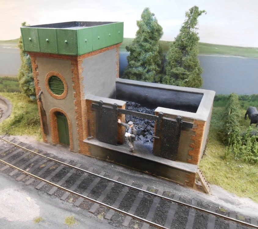 Made a mistake re the locoshed, which is covered with Wills random stone sheets. The water tower is DAS on foamboard, with the rendered parts represented by water colour paper.