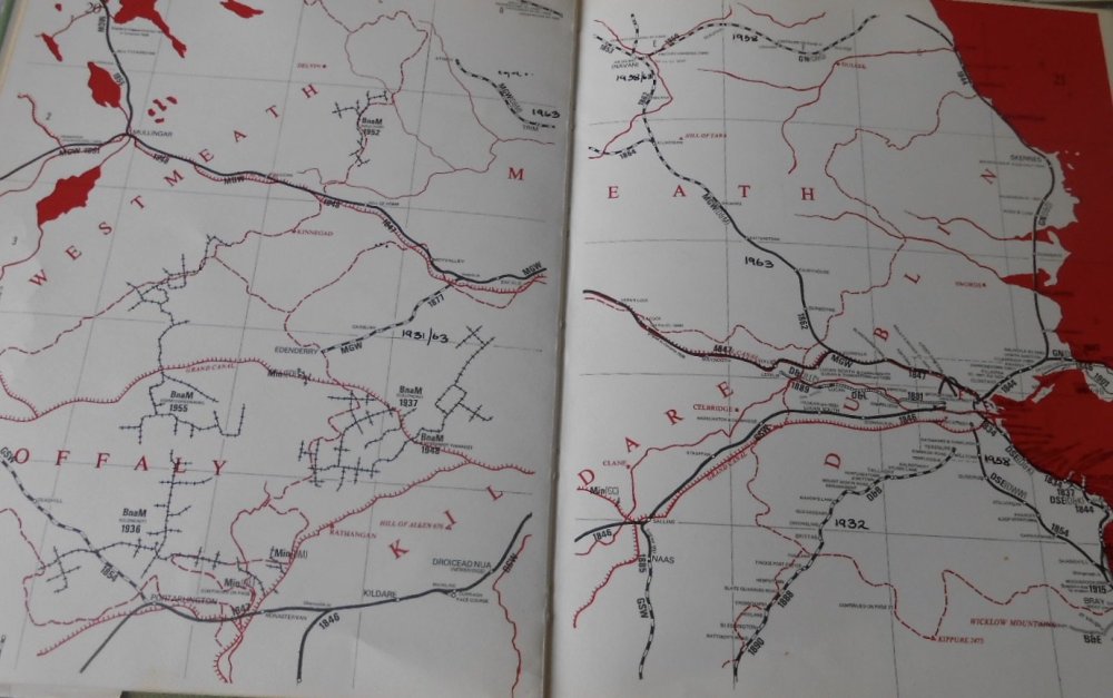 A couple of pics of Hajducki's atlas - cover and a map. Going through the pages, north to south, the [by no means definitive] list is shown below, though I've left out the obvious modern double track: Derry [Foyle Rd to St Johnston Belfast - Ballymena Belfast - Whitehead Portadown - Trew & Moy and Dungannon - Donaghmore Portadown - Armagh Belfast - Bangor & Comber Monaghan - Clones Collooney - Sligo Galway - Oranmore Athenry - Attymon Athlone - Ballenasloe & Roscommon Mulligar - Athlone & Roscommon Dublin - Athlone Clonsilla - Drumree Sallins - Naas Cherryville Junc - Carlow Wicklow - Newcastle Kilkenny - Laviston Waterford - Fiddown & Portlaw Cork - Blackrock Many of these lines were singled a long time ago, while some are closed completely. Others started single, were made double, only to revert to single again!