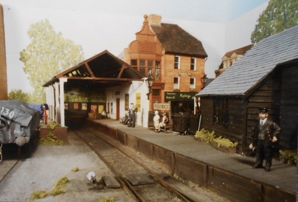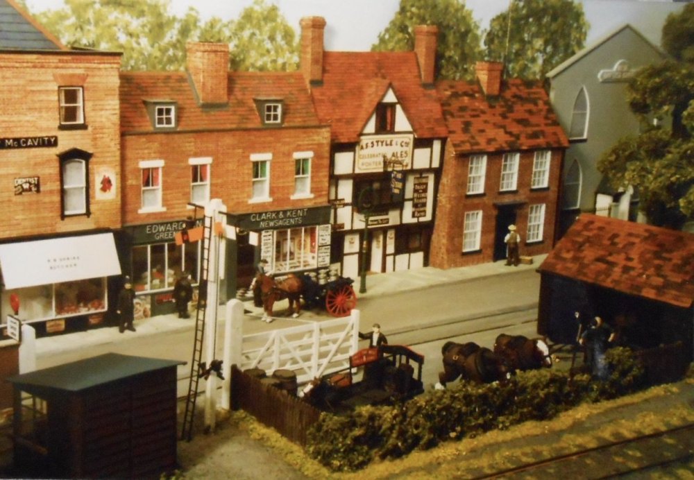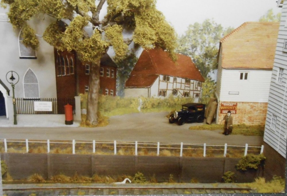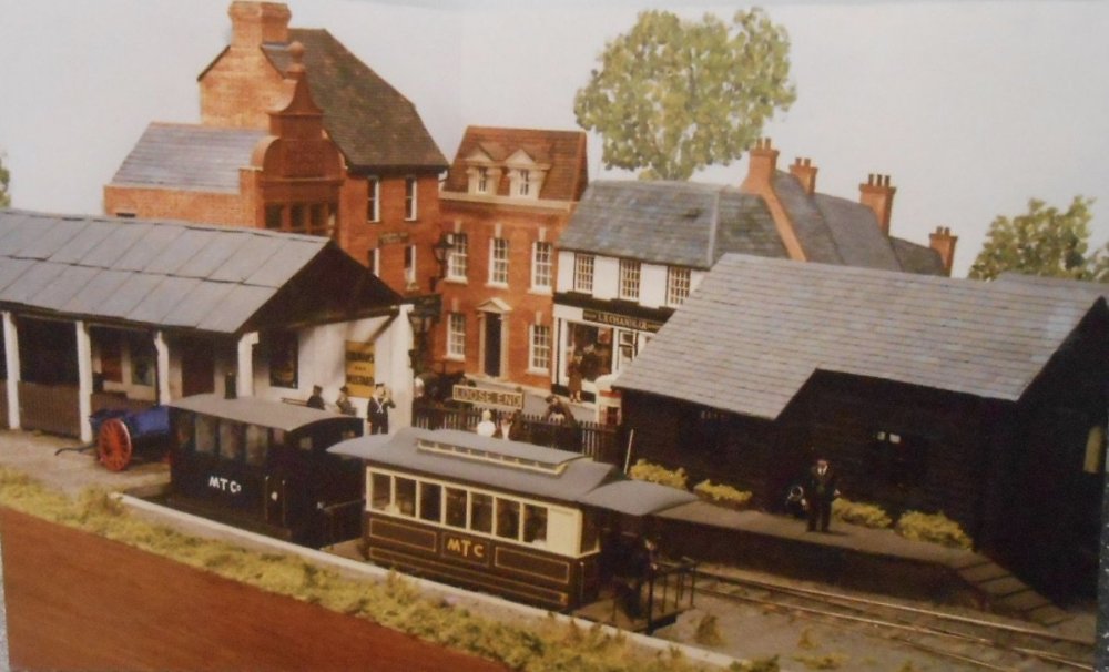 Loose End This was my first standard gauge 7mm scale layout. It was very much a Light Railway, with a mix of Colonel Stephens, Wantage, Wisbech & Upwell & Brill Tramways, to name but a few. The track plan was a mirror image of Wantage Town - ideal, as it is just over seven feet long, even in 0 Gauge. Track was Code 100 fb rail on copper clad sleepers, with points made by Marcway of Sheffield. It was built in the late '90s, so pre-digital as far as photos are concerned, but a fair few of the techniques went on to be used in my Irish layouts. Indeed, the light weight looking track even caused a few people to ask if it was broad gauge! Loose is a real village, just south of Maidstone, while the Kent & East Sussex Light Railway planned extension would have passed this way. Most of the buildings were based on actual ones in the small town of West Malling and I really went to town on the fine details, especially things like shop windows. Being Kent, there had to be an oast house of course. Locos and stock were very much based on Light Railway practice, ranging from Manning Wardles to a Wisbech tram [complete with face and Toby nameplate]. A Wantage Mathews tram was joined by other oddities as I developed my kit and scratch building skills. See what you can identify! The layout went to quite a few shows, but I could only manage about three a year in those days, due to work. Everything was [very] analogue, with wire in tube point control, three link couplings and operation from the rear. I learned a lot, not least balancing scenics in a small space via careful use of painted back scenes. Pictures below are photos of photos, so may not be the best, but overall the layout looks pretty good and worked well too. I was very pleased with the scene above, where the join between the painted road and the actual surface where the car is blends nicely. The layout was sold in the late noughties to a chap who lived near my Mum in Newark on Trent. I went on to build a small extension for him, featuring a hop garden. I also made him a Colonel Stephens railbus. Later, he sold it on & last time I heard it was living in a barn somewhere in France. By the way, an outline of my plans for a new 0 gauge layout will be appearing here soon.