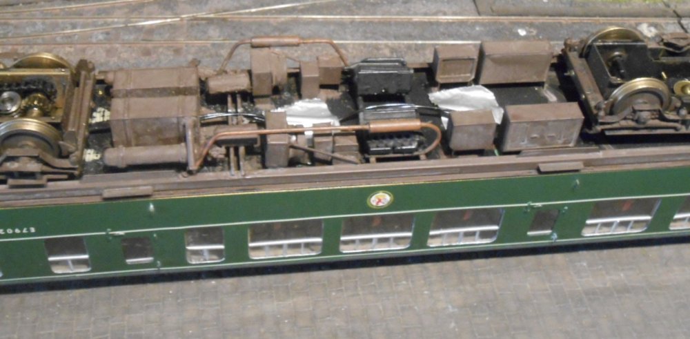 Ready to Run? Well, sort of: several items were bought when I was made redundant from Kent Education in 2011, though it must be said I was back at work the next day, but this time as a consultant. Such are the ways things still work around here, years later! First up were a couple of diesel shunters from Bachmann Brassworks. Nice models, but they came unpainted and the 08 in particular only had basic detail. It certainly ran well straight out of the box, but [I think] Modern Traction Kits did a detailing pack. Opening the latter, you were met with the words 'commiserations on buying the 08'. Well it didn't look that bad to me! Turns out the shape of the body is wrong - it should taper towards the top, but instead is very square. Nevertheless, the details were very comprehensive, with many tiny parts, often etched in stainless steel, so I set about adding as many as possible, though a couple got vaporised when I had my resistance soldering unit on too high a setting... A full paint job was required too, plus transfers from Fox. The 03 was pretty good straight out of the box, including some nice cab detailing, but like the 08 was in unfinished brass. Nowadays you can get both shunters for much less, ready to run. The 08 starts at under £200, I believe, but hey, these are both mine and I had a pleasant time working on them. The next purchase was much more of a problem child. Another Bachmann Brassworks, this time a Derby Lightweight two car DMU. On the face of it, another nice model, but the more you looked, the more you realised was missing, or even just wrong. Not good for £400 - and remember this was 14 years ago. First of all, there was no interior at all, while the more I looked at the windows, the more I really didn't like the very plain toplights. The under frames were very curious, The original units had two power cars, as they were intended for West Yorkshire, but those that worked in East Anglia had only one power car, due to the easier gradients. However, it was what was put underneath on the model which was really just odd. Lots of battery boxes [mostly in the wrong place] and what look like two electric motor casings, as opposed to diesel engine blocks. So, everything was stripped off and after a visit to the North Norfolk Railway to check out their preserved example, I set about trying to improve things. The picture below shows what was achieved by re-arranging the etched boxes and adding one or two castings, including a couple of large engine blocks. The non motor coach under frame was a much simpler affair, just needing some sturdy trussing made from plastic sheet, plus a brake cylinder and a couple of battery boxes. That just left the body work. After making up a full interior [lots of seats and a few passengers] for each coach, I then decided to cut out the toplights and make new ones from plastic strip. No small task given all those windows, while I also had to add glazing bars to the cab front windows. The original Derby units didn't have them, but it was soon found they were needed as the large expanses of glass developed a tendency to crack due to vibrations. A complete paint job was required too of course, plus the transfers, with the 'speed whiskers' in particular really bringing the model to life. Despite the faults, overall, it was a nice model, with some neat details, not least the corridor connections. You might just see I enhanced these with jumper cables which can be easily connected once the model is on the track. I calculated that the model needed over 400 separate pieces added [many of these for the windows], but I think it has been worth it, not least because, like many, I have fond memories of grabbing one of the seats behind the driver's cab to see the road ahead. Indeed, I once had a cab ride to Bleanau Ffestiniog in one. Like all the models pictured the DMU is sitting on Northport Quay and it is interesting to see how two 63' coach units dwarf the station. The final two models in this post were bought ready made from a fellow club member, Both are Connoisseur kits [always very good], but were painted in LNER livery, so I redid them in BR black, followed by some weathering, especially the F5 2-4-2T. The 0-6-0T is one of the J69 'Buckjumpers' So ready to run maybe, but definitely not straight out of the box.
