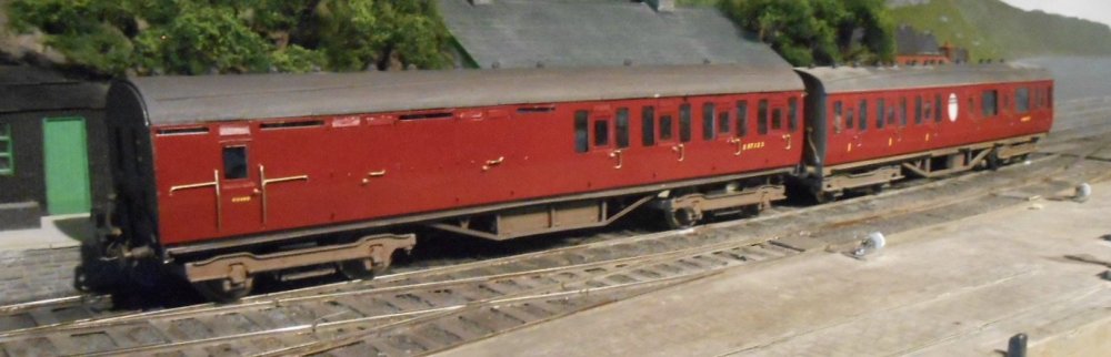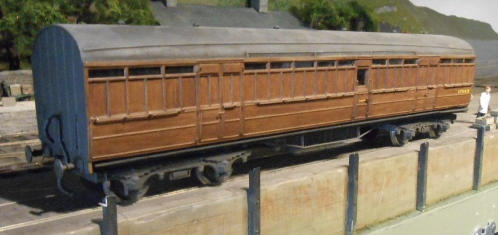 Parcels Stock I've always had a thing for parcels stock - it is probably down to the variety that could be seen in a single train, so I built up a decent sized rake, along with the option of adding a parcels van to a short passenger train, which I also like. First up is a Southern Railway GUV. These seemed to turn up all over the country for parcels and newspaper traffic. Mine is the Slater's kit & very nice it was too to build. Next we have an LMS bogie GUV. Another nice vehicle with its short bogie wheel base. Unlike the Slater's kit [mostly plastic], this one, from Wagon & Carriage Works is mostly etched brass and white metal castings, so it rather heavy. The LNER full brake is much lighter, being an Ian Kirk plastic kit. Fairly basic [and therefore requiring a bit more work to be presentable], these kits were nevertheless very cheap and good value. Getting the roofs to sit properly could be a pain though. The LNER pigeon van was either D&S or W&C again, hence mainly etched brass and white metal. Back in the day, racing pigeon traffic could be quite substantial. Below that is an LNER horse box, from one or the other of those stables [pun intended]. So, a nice mix of shapes, sizes and roof lines, which when added to vehicles like fitted vans, milk tanks and the like, makes a classic Eastern Region 'Stock Train', which I'm hoping to run next weekend at the Chatham Show, behind either my B17 or D16. Coaches Quite an eclectic mix, mainly because passengers trains on Eatonswell only ran to three coaches, or two and a parcels van. First up is a pair of ex Great Eastern corridors. They were D&S kits bought not just because I liked them, but also because MRJ ran a couple of articles on how to build and detail them. On Eatonswell, they usually ran with the SR GUV behind my E4 2-4-0. A trio of Gresley 'short' bogies next. The composite was scratch built in plastic card and strip on Wayoh bogies, while the pair in 'blood & custard' are Kirk kits. The B17 used to work these - a bit of a down turn from previous express duties, but it was often the case of them being relegated to local trains once the B1s and Britannias arrived on the scene Finally, a couple of Thompson suburbans. The brake 3rd is scratch built [Wayoh bogies again], while the composite is another W&C kit. They often ran with a horse box, hauled by the F5 2-4-2T.