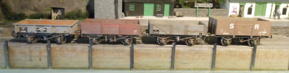 Well, you know you've been neglecting things when a layout drops off the front page and am not sure I've actually made anything since before Easter. Getting Northport Quay ready for Railex, then the Club layout ready for the Chatham Show very much part of the 'problem'... Anyway, with the Club Show now out of the way, it is at last time to get back to some of my own modelling, not least because Swillybegs is due to make its debut at the Tolworth Show in November. There's been a list of things to do for quite a while, so it has been a case of just getting on with it, starting with a new station name board. Simple enough - white on black computer print out, stuck to a board made from plastic sheet and strip New fencing next: firstly fitting 0.5mm plastic road to the posts that have been on the tramway platform for ages, then some Parkside wooden fences around the buffer stops. Then came some detailing pieces for the quayside area. Below is an overall view of the station area, including a bit of gentle fettling for the track where I had to remove permanent [rare earth] magnets & replace them with Gauge 0 Guild electric ones. You can see the new buffer stop I made [front right] too. The rest of the pictures give a tour of the layout, with Donegal stock on show, alongside the 'West Donegal Tramway' train, using former Clogher Valley loco and new coaches based on Schull & Skibbereen types. Much to my surprise, it has only taken a few days to sort out the bits and pieces. So, overall, the scenic work is done. What needs to happen now is to make sure everything runs well, both all the newly built stock and the original CVR stuff. Much of the work revolves around getting my home made 'chopper' couplings working properly. Playing trains, in other words! However, planning for a new project is also getting under way, for which you will have to keep an eye on the 'David's 0 Gauge Stuff' thread in the British Outline Modelling section.