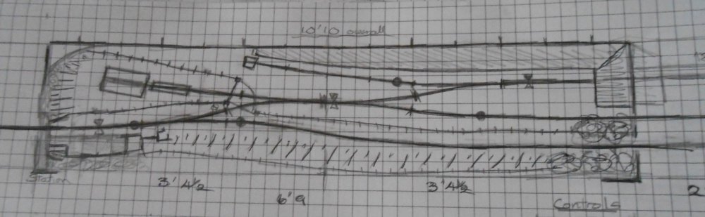 So, time to come clean about my ideas for a new 0 gauge project... As I've said earlier, it all comes down to rediscovering all my stock that has been languishing in boxes for the last ten years or more; that and a fascinating article in the latest Model Railway Journal called "A tale of Three Stations or more..." As you can see, it combines Iain Rice style design, with one of his favourite subjects, an East Anglian byway. Very much a 'part layout' [with a fiddle yard taking the place of half the loop], it appealed to my limits of a 6'9" shelf space, expanding to the 11 feet footprint of Northport Quay and Swillybegs' trestles and beams used for exhibitions. It also got me looking back through my books on East Anglian railways - especially those by Dr Ian Allen, John Brodribb and Peter Payne. From these, ideas rapidly coagulated into I scheme I felt could meet my needs: A single track line with a siding leading to a private branch, in particular a small set of exchange sidings The 'main' line could run things like my diesel railbus for passenger traffic, together with short freight trains that could exchange traffic with the private sidings In the 1950s, an East Anglian branch freight could be as little as one or two wagons and a brake van, hauled by anything from a D16 4-4-0, J15/17/69 0-6-0s, F5 2-4-2T through to Class 15/03/08 diesels. The private sidings would be perfect for my ex Wantage 0-4-0WT, or a Manning Wardle 0-6-0T. All of which I have, of course, while among my 40+ wagons are pretty much all the types I might need in terms of vans and opens, plus the essential brake vans. The design I've come up with builds on the MRJ article of '3 stations in one' - indeed I think I've identified at least six. Allow me to explain: The sketch plan shows the single track through line running across the front of the scene. On the right hand side is the main fiddle yard [I'm thinking cassettes at the moment], which will be no more than 30" long, enough for a small loco and three wagons, or a tender engine and two. Don't need anything longer, as the Iain Rice rule of maximum train length being no more than a third of the scenic length demands this. At the other end will be an 18" length of plain track - enough to hold the railbus before its return journey, or indeed a loco with a parcels van or two. There were a lot of light engine movements or loco and brake van in East Anglia at this time. The main line will be Peco bullhead track, but the private sidings will be flat bottomed, Code 100 rail on copper clad sleepers to help emphasise a lightweight look. All four points will be Ys: in particular the Y points offered by Marcway of Sheffield. Have used these many times, because they are such space savers. A 6' radius Marcway Y is just 12" long, compared to 18" for the Peco one. As you can see, there is half a run round loop [the right hand fiddle yard does the other half], plus a siding with a small loco shed and a kickback siding. The key to the multiple personalities lies in the shaded area in front of the back scene. This will hold a range of exchangeable 'jigsaw' pieces [another Rice idea] that will mean I can change the personality and purpose of the layout over time. Initially, this will probably be just a section of low cutting, with open scenery behind - very Fenland, in fact. A couple of trees should hide the exit to the fiddle yard. In this form, the private branch could have at least three forms: an agricultural line, such as the Wisbech and Upwell Tramway or the Benwick branch An army depot An airfield branch - both of which were common in the area and offer a wide range of traffic However, if this scenic area is replaced by buildings, then there a several ideal prototypes which could be used: Maltings and granary - am thinking Snape in particular, which had its own BR operated branch, but there were plenty of others with nice buildings such as Hadleigh, Saffron Walden or North Elmham for inspiration. I particularly like the archway at Snape, where in reality, wagons were shunted by horse or road tractor. In my case, it makes a nice scenic break which I can use in the other concepts below. A jam factory. Yes, really - the Wilkins factory [still open today] on the Kelvedon and Tollesbury Light Railway was rail served, albeit by the branch goods, but there were enough sidings on the site to merit a private shunter instead of horses. A dairy. There was a rail served one at North Elmham. Same idea as above, while I do of course have three, six wheeled milk tankers... An engineering works. Think Garretts of Leiston on the Aldeburgh branch. Makers of agricultural machine, including traction engines, they had their own shunter. The works is now a museum that is well worth a visit. As I have a bit of a history of re-imagining my layouts [Arigna Town to Belmullet, Fintonagh to Swillybegs], building in some interchangeability very much appeals. So, there we are. Am already working on lists of materials - mainly timber for baseboards, plus electrics and track work. One of our Chatham Club members works for a timber merchant, so a shopping list of pre-sawn 6mm birch ply is already under way. I still need to make a wiring diagram for both layout an its integral control panel, plus play around with things like pelmets and fascias to frame the view. For now, with hopefully a few more weeks of summer to enjoy, nothing is likely to be started before the autumn, while both Northport Quay and Swillybegs have exhibitions coming up. However, knowing what I'm like, there is now a real itch that needs scratching! Be assured, that once I do get started, you'll read about it here. Indeed, perhaps I ought to get out that roll of lining paper and draw out the plan full size - just to check clearances and so on, you understand... By the way, if anyone out there fancies using or adapting any of these ideas for themselves, feel free. 6'9 in 0 gauge shrinks to less than 4 feet in 00 and 2 feet in N. Never say you d