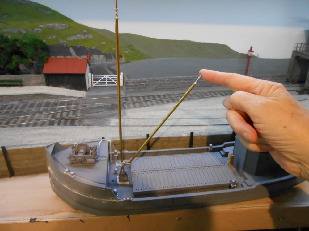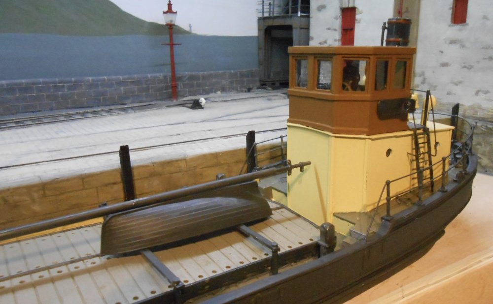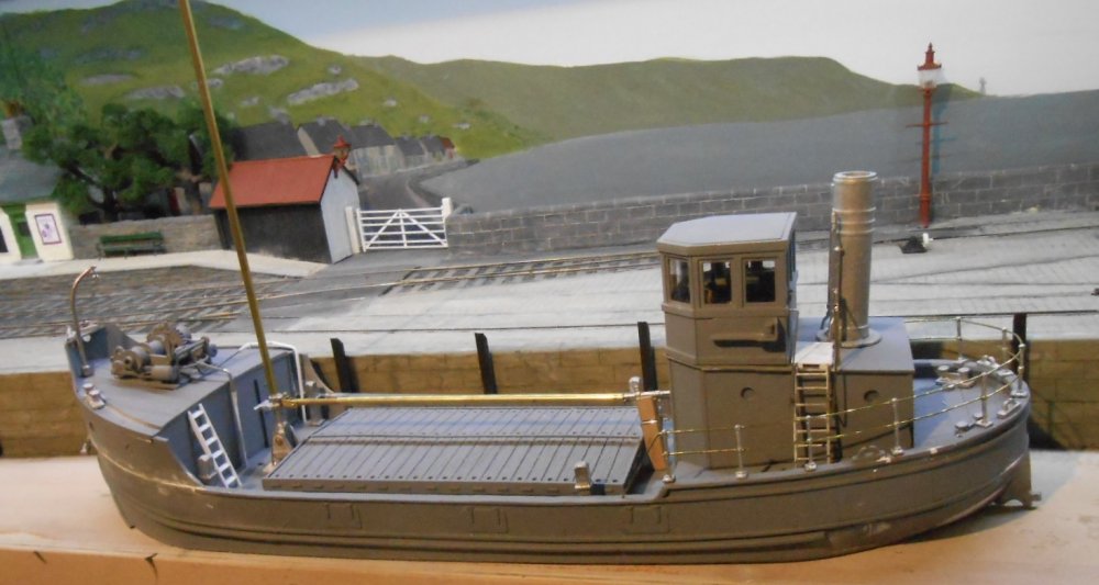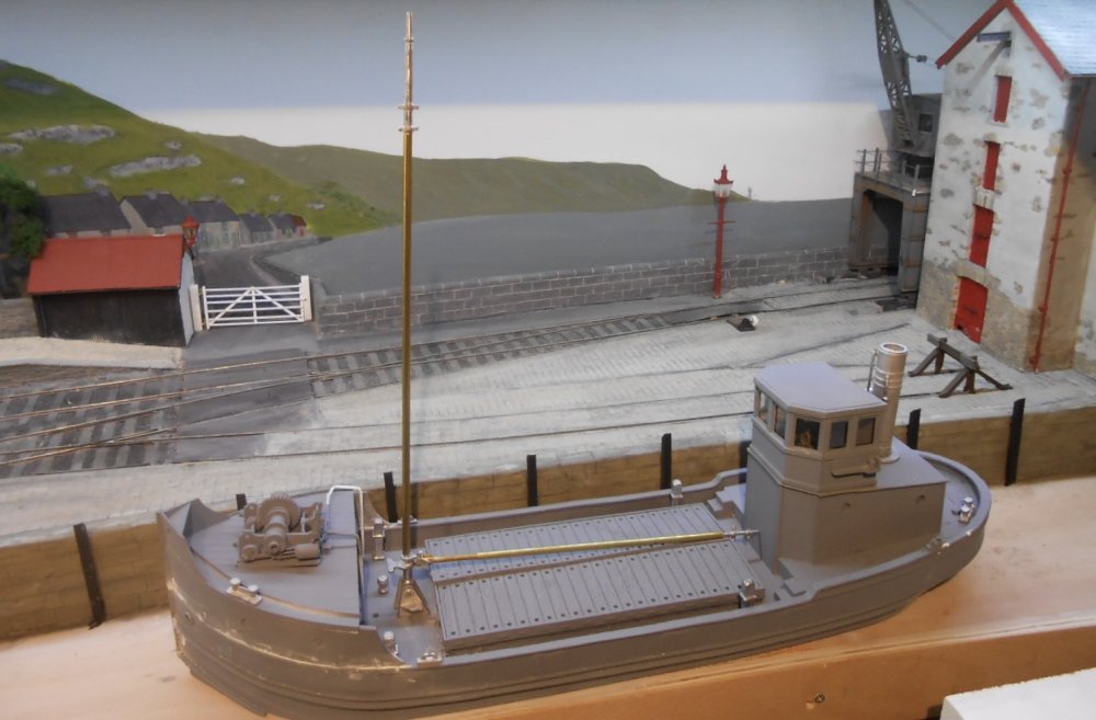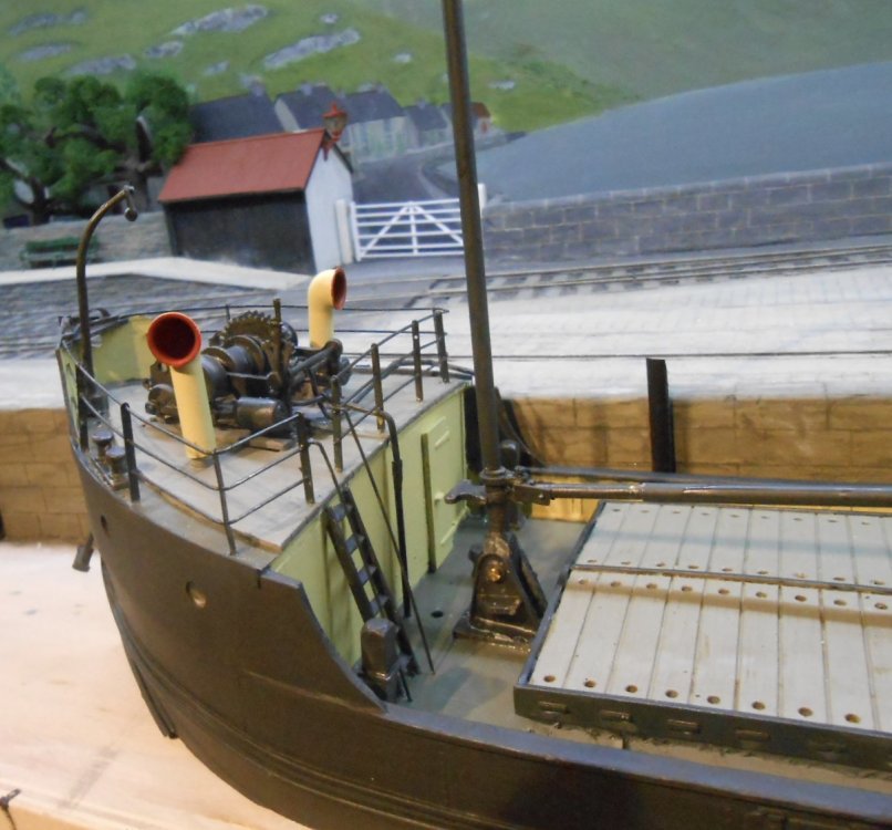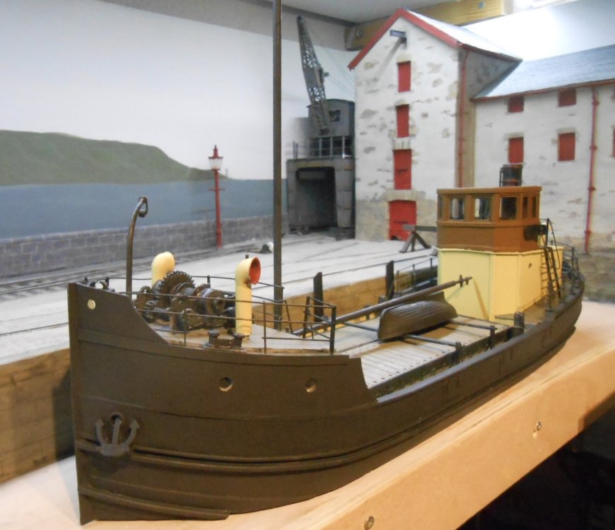 The last few bits and pieces for a few days, as I need to transfer my attentions to getting Fintonagh ready for Cultra. Always best to go through preparations and servicing a few days early - just in case! Anyway, as I'm sure most of you know, it is the little things that seem to take longest, especially when they need painting as well. So, did the four lifebelts and got them fixed this afternoon. Also shortened the mast by 3cm, as it was higher than the backscene, while the derrick's boom now has a bracket on the main superstructure to rest on. Spent the most time on a bit of lettering - though not sure if the yellow text [all I had] is correct, or indeed if Westport is an appropriate place for Acla to be registered, so it may be temporary... As already mentioned, the name is Gaelic for Achill, which seems appropriate as this is a key part of the little coaster's territory. Oh yes, there are photos of the other side too.