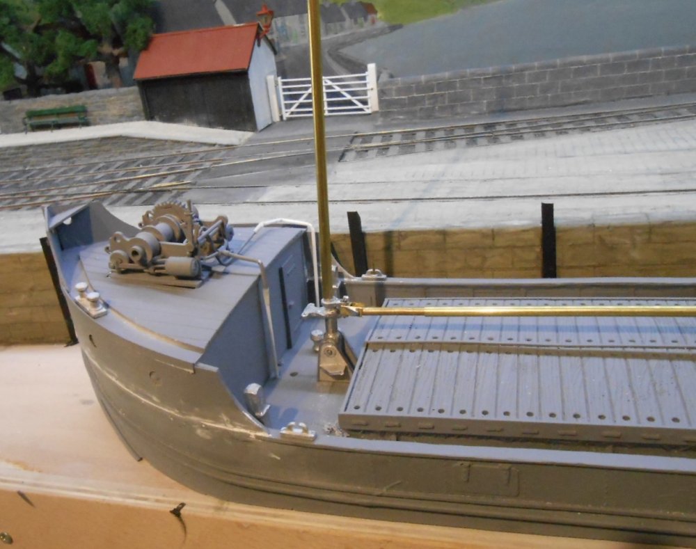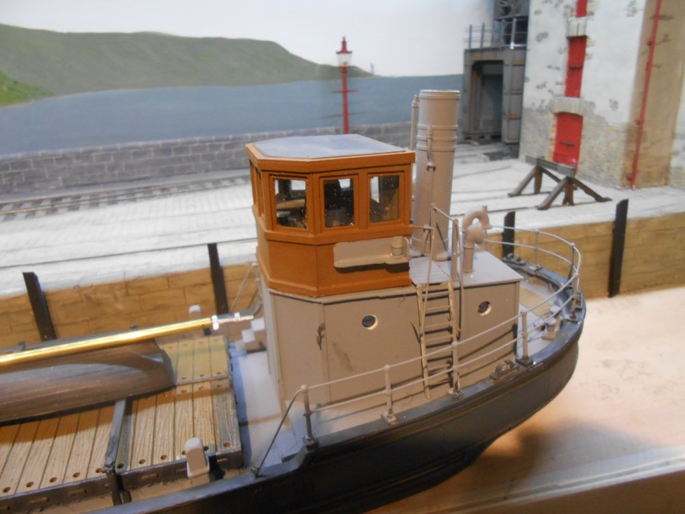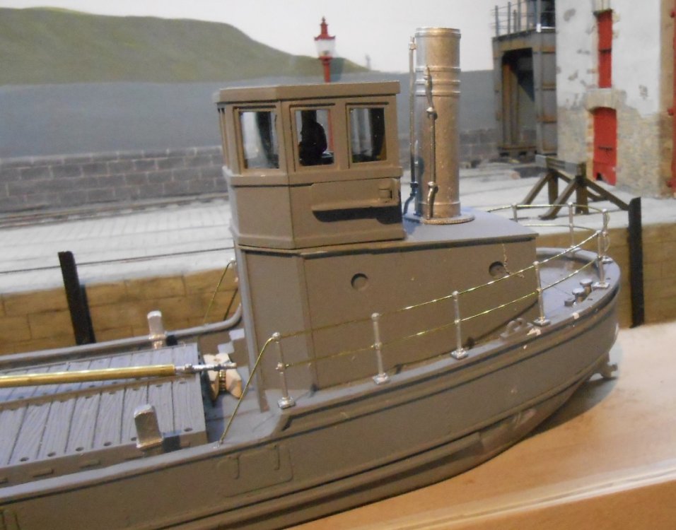 Steadily chipping away at fitting the bits and pieces from the kit this week. First job was the mast and derrick. I adapted the castings with brass tube, pins and 10ba bolts so the the derrick can swing from side to side as well as up and down. I then did the same thing to mast, so it can be unplugged from the ship's hull for safety. Probably one of the finest model shipbuilders around is Gordon Gravett, who actually did it for a living and having met up with him at the Uckfield show this weekend, it was great to talk further over the phone later this week and get some advice. On his demo stand at Uckfield were two stunning models of Somerset & Dorset colliers - very much along the same lines as my Puffer hybrid. The detail he has included is amazing & I was keen to find out where he gets some of his bits & pieces. Turns out I have a very good option locally in the Model Shop in Chatham Historic Dockyard, so a visit is planned to see what I can find. I also quizzed him on things like handrails, ropes and rigging. Just as Broithe suggested, elastic thread seems to be the way to go on the latter here. Another aspect was how to do water - both colour and material. I'd been brooding on using some of the Woodlands Scenics resin, but Gordon suggested using 2mm acrylic sheet, carefully cutting out the outline of the hull, so it sits in the water, rather than on it. However, that is for the future. The rear handrails have been made using the white metal castings from the kit, which needed careful drilling out, plus 0.7mm brass wire The last couple of days have seen work on the two sets of steps, which have had to be scratch built, using various bits and pieces from the spares box, plus their associated handrails. A few other items like the anchor [and its davit] and mast head light have been added too. The aim is to get as much detail added as possible before painting, with the rigging added last. It's not a good idea to try painting [especially airbrushing] once the rigging has been attached, as it makes it go hairy.