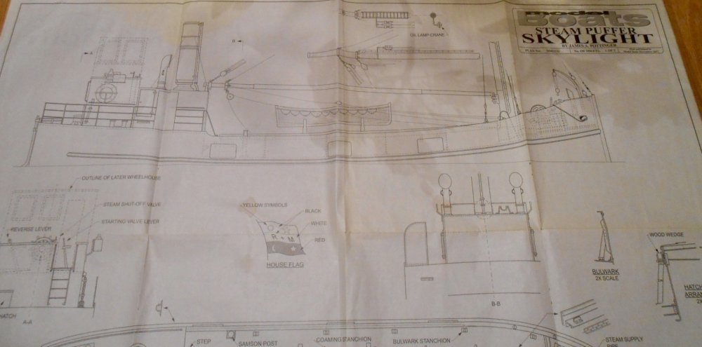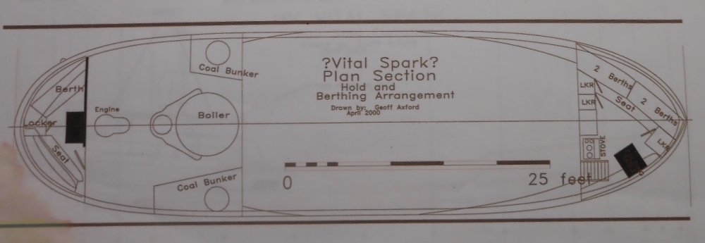 You may well be right, Mike. Various drawings below show the interior detail of two different Puffers - an early 'Vital Spark', with just a tiller and no wheelhouse, plus a later one - the Skylark. Interesting to see the berthing arrangements on the Vital Spark. the skipper had a rear cabin to himself, with a couple of berths for crew in the bow, along with basic cooking facilities. No ensuite bathrooms though! The Skylark drawing gives basic details of the wheelhouse controls, along with the arrangements in the boiler/engine room, which show the importance of weight distribution & why the funnel is where it was. Am hoping the built up forecastle on my Acla allows the boiler & funnel to be behind the wheel house! Meanwhile, much as it would have been nice to include all this interior detail, the fact that none of it will be seen means it just aint going to happen.