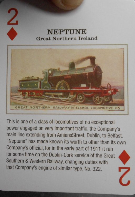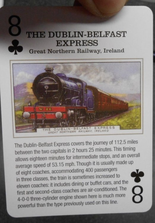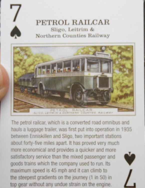 Rather than start a new topic, I think this fits in here & is certainly historical. No modelling for me these past couple of weeks as we've been on a New England fly drive [postponed twice because of Covid], starting in Boston, moving up into the White Mountains before making our way south to Rhode Island and Cape Cod. Anyway, one place we visited was the former home of Robert Lincoln, son of Abraham and founder of the Pullman car Company. In the gift shop my wife bought me a pack of reproduction playing cards, featuring important trains of the 20th Century. Imagine my surprise and delight to find that the seven of spades is an SLNCR railsbus! Obviously whoever choose each subject has very good taste, but given the amount of Irish heritage over the Pond, perhaps it is not too surprising - though the little railbus sits among what might be more expected in terms of 'Great Trains', like the Flying Scotsman, 20th Century Limited and so on. Further on in the pack, the five of hearts is the North Atlantic Express, the eight of clubs the Dublin - Belfast express and the two of diamonds a GNRI 4-4-0 'Neptune'. Been to North America several times, so it was nice to see there are lots of heritage railways in New England too, albeit most of them using first generation diesels. Food and drink can be eye wateringly expensive though, but is at least off set by the price of petrol. They think it is expensive at under $5 a gallon or less than one euro a litre - needless to say, we made sure they knew the cost over here!