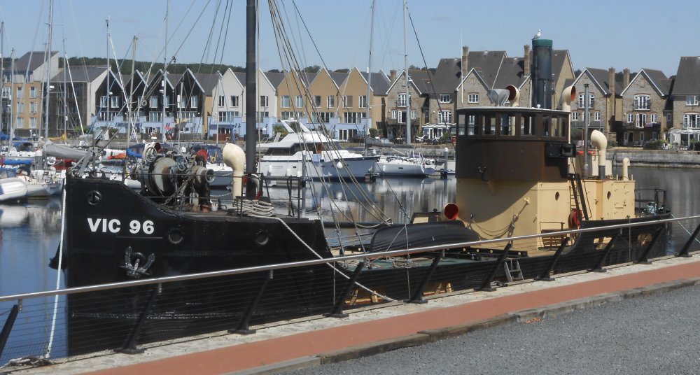 Nothing much to report, except that this is the first modelling I have done for a month! Rare for me, as I like to keep the pot simmering, as it were. However, a holiday, followed by that spell of inordinately hot weather was not exactly conducive to creative pastimes. Forgive the prose - 'Emma' is on the TV... Anyway, am trying to finish off the right hand quayside [yet more DAS], while the 'water' surface needed attention, so much use of car body filler and sanding smooth afterwards has been a gentle step back into things creative. What I am looking forward to it getting to grips with the Langley 'Clyde Puffer' kit. Bought this before Christmas & it has been mostly sat on a shelf since then, becoming ever more an itch that needs scratching. Whether a Puffer would ever have got to the west coast of Ireland is a moot point, so the aim is to adapt it to a more conventional coaster outline. An ideal prototype for this resides in Chatham's marina in the form of Vic 96. Built as recently as 1948, but looking at least 50 years older, these 'victualling ships' were used to provision larger craft off shore. Around 20 feet longer, the heritage is nevertheless easy to see. I actually prefer the high forecastle and especially the fact that the funnel sits behind the wheelhouse. So, photos have been taken and sketch plans are starting to be produced, so hopefully it won't be too long before I can get started.