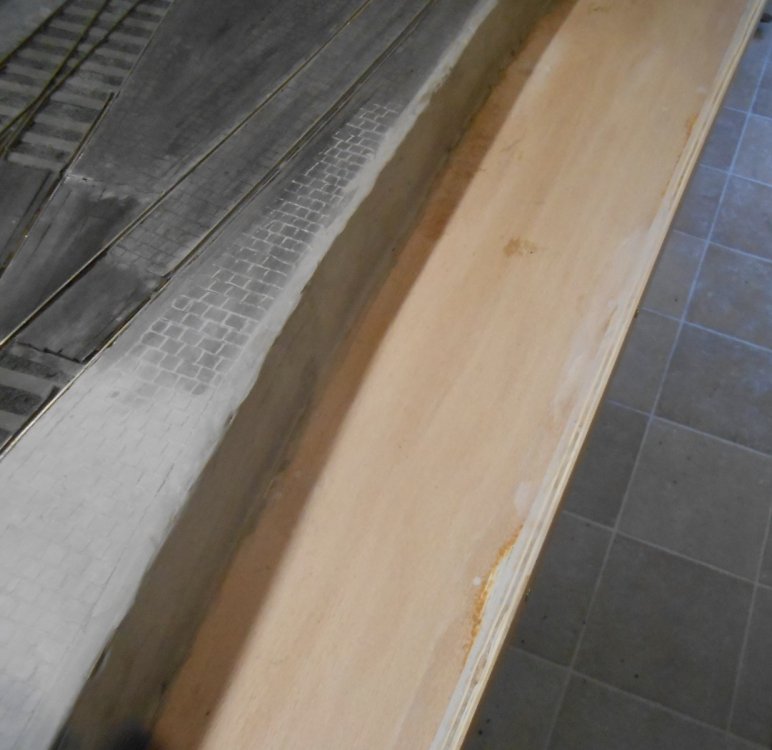 A couple of thoughts. As your baseboards line up nicely, if you want to avoid the earthquake crack between them, use car body filler. Put clingfilm on one face, liberally smear the filler on the other and clamp firmly together. Once the filler has set, you should have a nice, almost invisible join, though if the boards are going to be permanently joined, you can fill over it anyway. As for the quayside surface, am guessing you are aiming for something post 1960s and if so any setts, cobbles etch would probably have been main be covered in tarmac or concrete, so a lot less work to model. -