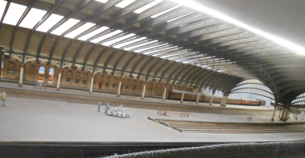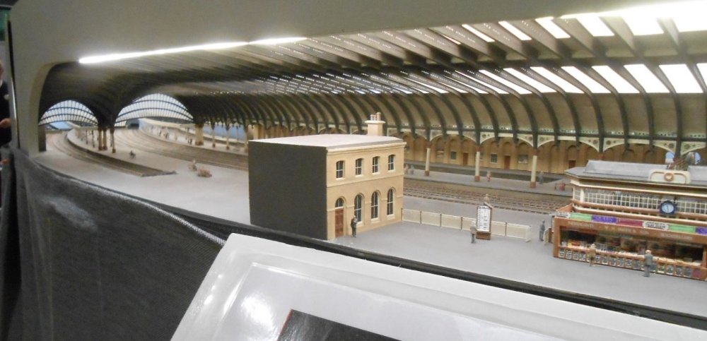 It was a a fine weekend at Aylesbury and a pleasure, as always to have David along on Sunday. Railex is very much a 'fine scale' show and though there were plenty of families and other folk along, events like these have a high proportion of knowledgable fellow modellers, which always results in interesting and informative conversation. My Acla coaster caused much interest, while it was nice to get plenty of comments about how 'Irish' the layout looks, which has always been essentially one of its main aims. David's PP and Q locos really are fine models so it was great to run the PP all day. Slight problem was that it is too long for my headshunt [likewise the Q, which is an even bigger beast], so eventually we worked out a way of using my J26 to collect the coaches. AJ coupling at one end for the 0-6-0T, screw links the other for the PP. The latter's 6'6" drivers are obviously intended for high speed mainline work, but it rolled across NPQ, at little more than walking place, very smoothly. Another highlight for me was seeing Ditchling Green again. This was the layout that launched Gordon & Maggie Gravett as major players in 7mm scale modelling. When the Chatham Show first started in the Dockyard, we used to put up a lot of exhibitors in our own homes, and Ditching Green helped start a long friendship when they stayed with my wife & I. Gordon later sold it, to make space for Pempoul and it ended up in a barn somewhere in France. Later, my own Loose End layout ended up in the same place! Anyway, DG is now back and has been extensively renovated. As can be seen below, it still looks very good indeed. See if you can spot the baseboard join in the last picture. Other things that caught my attention were the 2mm depiction of York station and an interesting diorama illustration perspective modelling, but all the layouts were of a very high standard, so it was great to be part of it all.