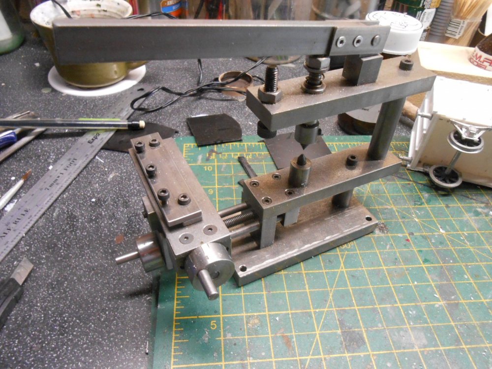 Less than a week ago I wrote of how adding micro strip strapping to wagons could be therapeutic. However, since then have been doing little else and it is quietly driving me nuts. The two MGWR vans only have about 80 [!] pieces between them, but the plates that hold everything together add up to over a hundred separate pieces for each van, while there are over 200 rivets too. Take the small plates that go round each length of strapping - often two or three to each - it involves five separate pieces [four of them just 1.5mm square] with three rivets - plus two of the small squares have rounded ends. Ok, it only takes a few passes with a file to do the latter, but believe me, it all adds up! Thus far, I think I've got all these bits done, along with what appear to be two metal vents on each side - each of these comprising another five individual parts and four rivets - but there still remain two louvres on each side, with one more each end. Had I thought ahead a bit more, I really should have resin cast the body work, for even with just two of each van, making just a side and end for each would have cut the work by 75% AND I could have made my fortune marketing them to other 7mm scale broad gauge modellers. Well, maybe not the latter! Oh well, slowly getting there and, fingers crossed, the GSWR vans appear much simpler. The photos hopefully show what I mean and include some pretty cruel enlargements of some of the detailing.. There is also my GW model rivet press, without which this work would be a lot harder. This really is a quality piece of kit and if you use the added table can not only churn out straight lines of rivets less than 1mm apart, but [if your maths is up to it] create circles of them too.