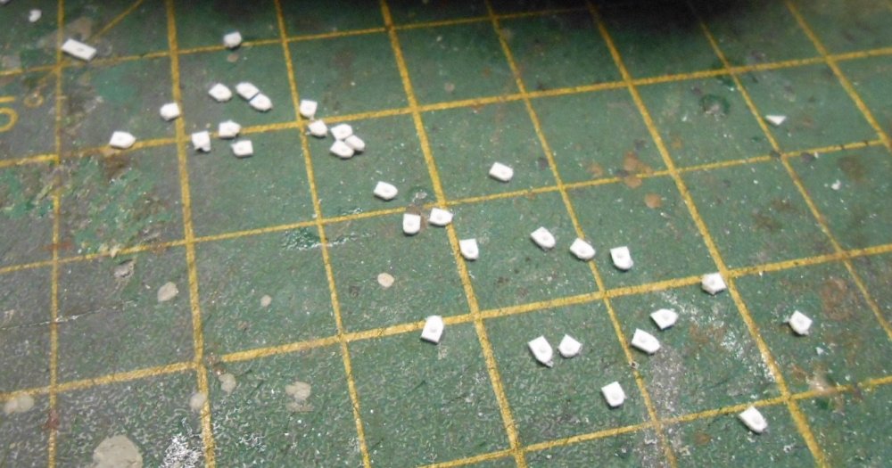 Nothing fancy, because there were on!y two slats on the side ones and just one on the ends. Used 60thou square section for the outside frame and 20 x 80 for the slats, fitting them in situ. Applied solvent and then held the slat in place with fine nosed pliers for 30 seconds till the solvent grabbed enough. Did a single in each position around both vans, by which time the solvent had gone off enough to add the second. Noticed that Warb was making his louvres for his church on the workbench, making half a frame and adding the slats to that, while Archers, the transfer rivet folk, have louvres in their catalogue, which could be very handy if they had the size you want. Otherwise, louvres are a complete pain, I think, including the fact that the spellchecker here insists on calling them lovers!!!!