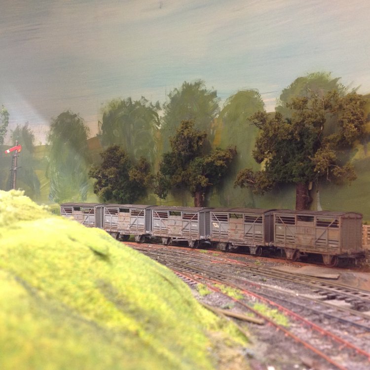 I managed to make it to the exhibition in Blackrock last October and bought 5 Provincial Wagons CIE cattle wagons. With these plus three GNR wagons plus some others, including a rework of the old Mainline LMS wagons, I can now assemble a ten wagon cattle special. I’m sure some of you know that Leslie McAlister of Provincial Wagons has named his home Pettigo Fair. Leslie, wagons will be delivered in time for the Fair! Others have done a better job than me on these lovely little wagons but I can only offer the excuse that my energy levels are, and have been somewhat depleted . One thing I am lucky with is reasonably generous curves; circa 27 inches. That has allowed me to close up the gap somewhat between wagons. Some photos to finish. Glover And maybe a few more snaps. Glover