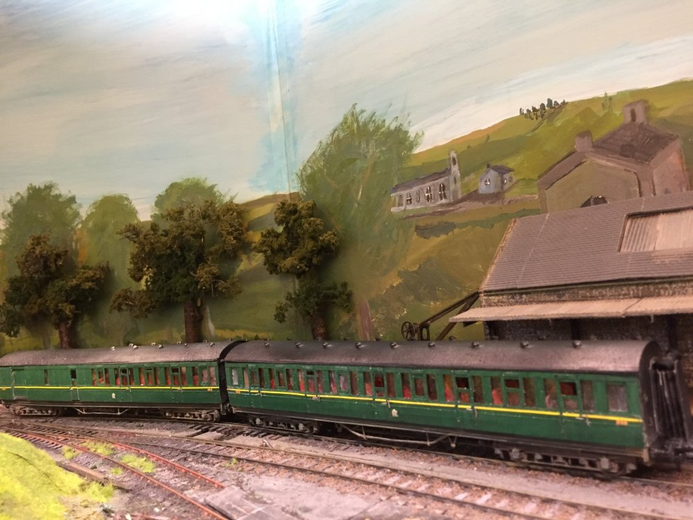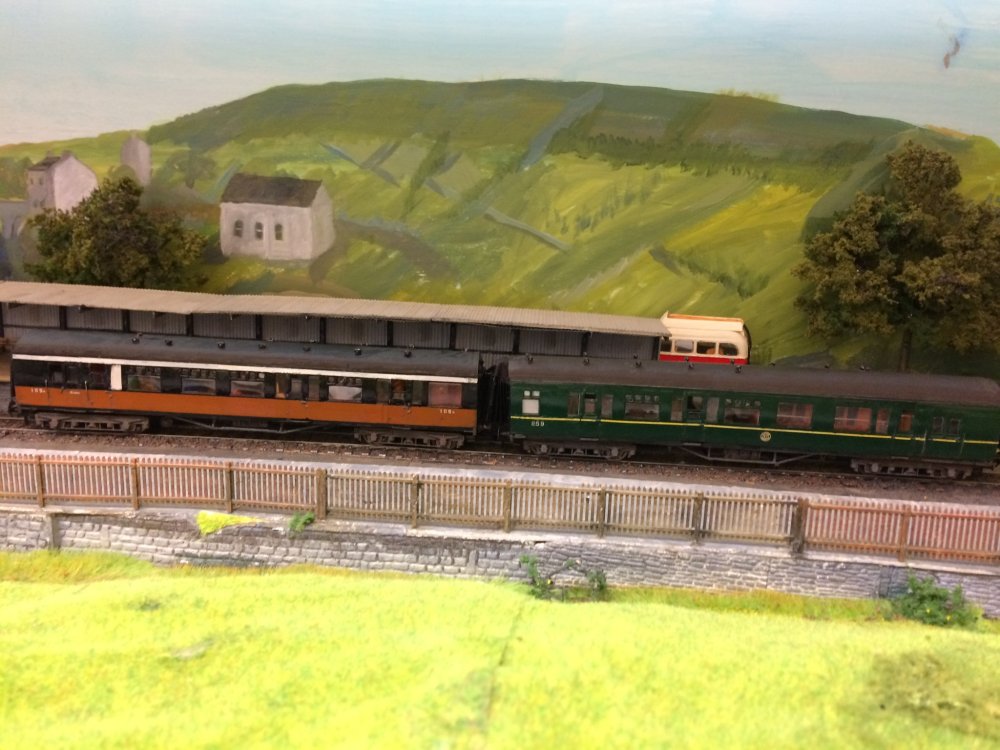 I have painted the coach in CIE green on one side and black & tan on the other. Given that the layout is set in 1963, this I think is reasonable. I have also given it a different number on each side and attempted to replicate the CIE practice of placing a small 'c' in front of the original GNR number; CIE did not renumber GNR stock. I have now started work on a CIE brake/standard but don't wait up: it will be some time before the dust settles on that project. Glover And, as a good night from me, here are the two sisters together.
