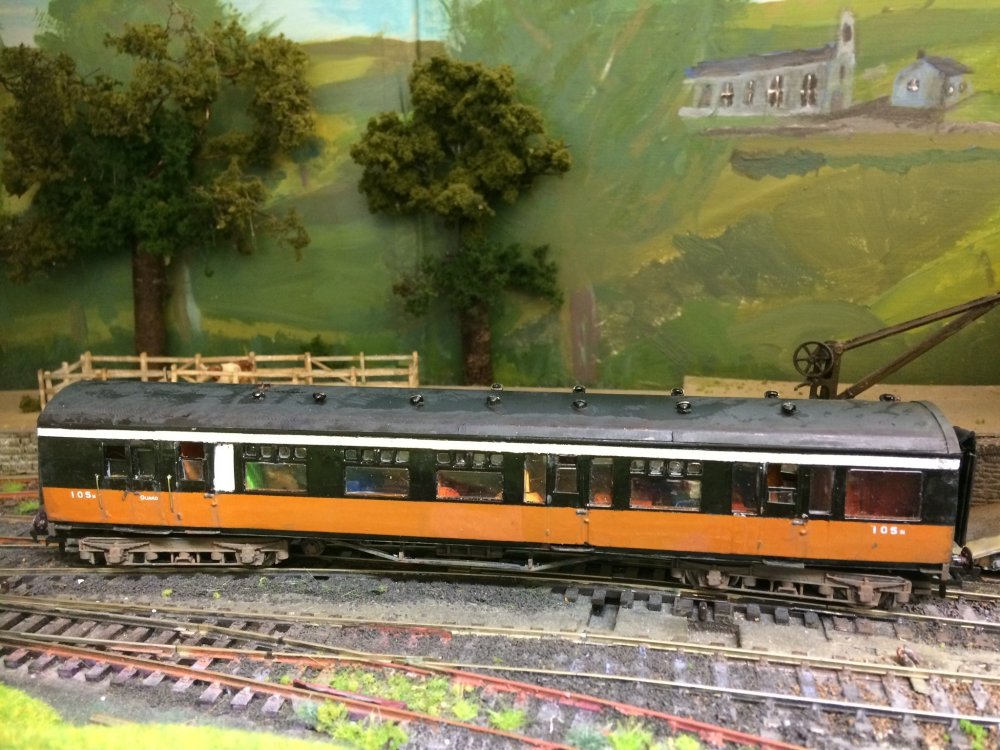 Thank you David for your kind comment. I did mention that I had a lot of spare parts left over from the UTA model...... Now, the GNR built 3 of these coaches. On the break up of the GNR, one went to the UTA while the others went to CIE. Both lasted to about 1970. It might be the sign of advancing madness but I deciðed to build another one. One improvement I made over the UTA coach was to build up the lower part of the door windows while extending the top, which does I think help to give it a more GNR appearance: see photo. Glover