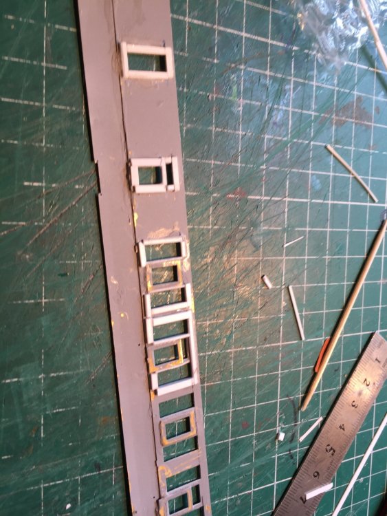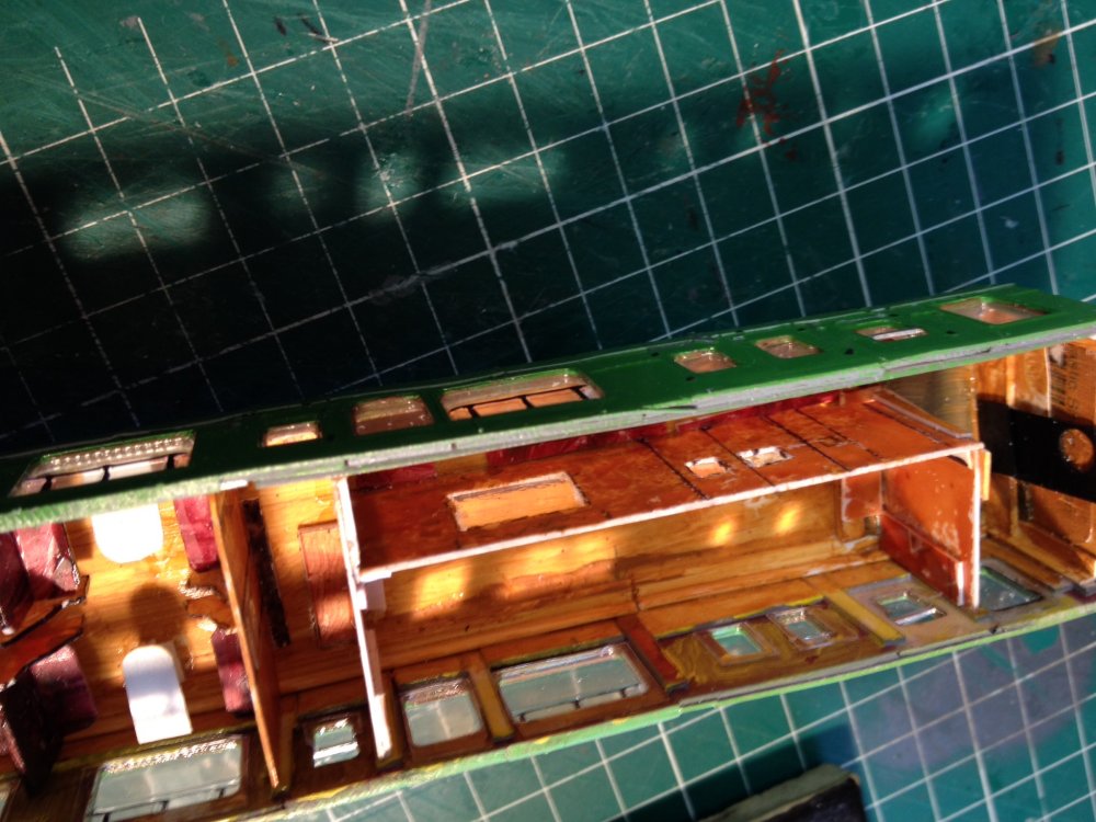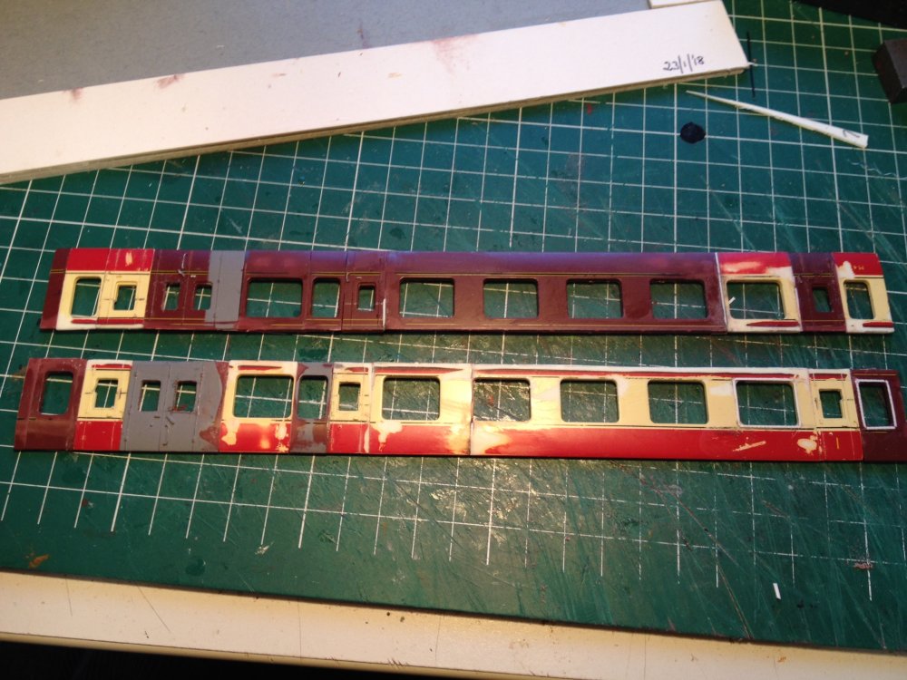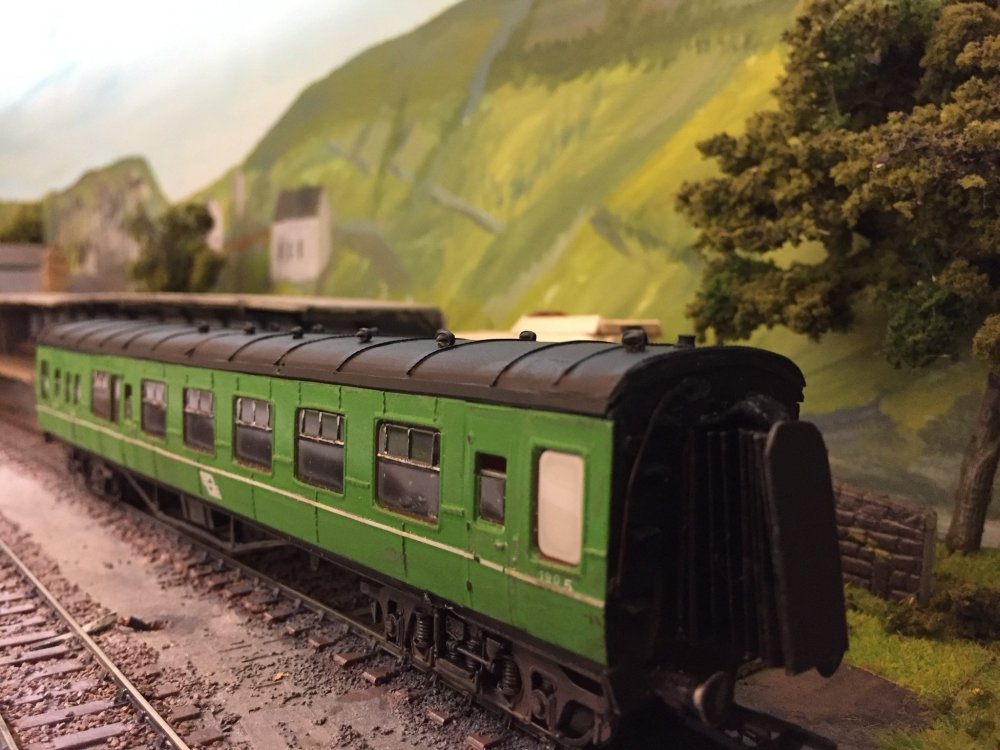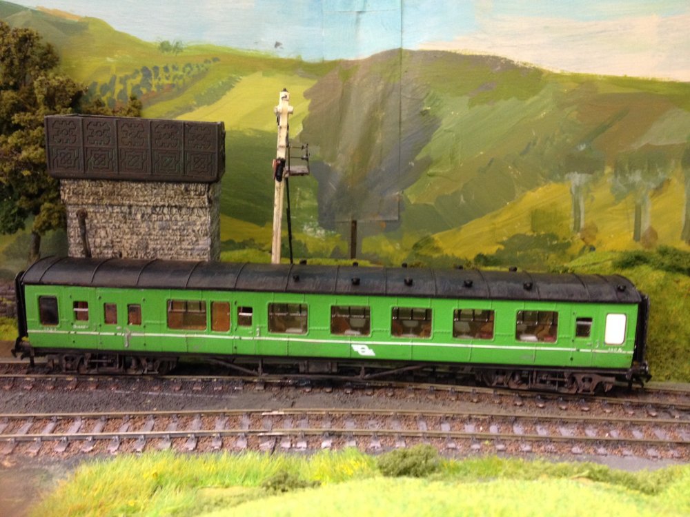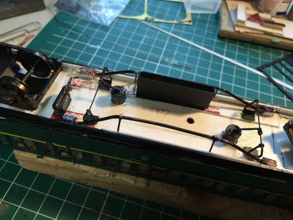 No sign of the missing post, so here goes, again. A characteristic feature of these earlier CIE coaches was the rivets joining the metal panels on the side. I have represented these using tiny slivers of corrugated plastic (bought years ago, no idea where). I also formed window frames using thin Evergreen strips, #110 , representing the rivets by rolling a small screwdriver with a serrated handle over the plastic. Same technique used to form the prominent roof strapping. Together with SE Finecast flush glazing ( and painting the window reveals brown), I think these changes really do transform the old Hornby moulding. Glover