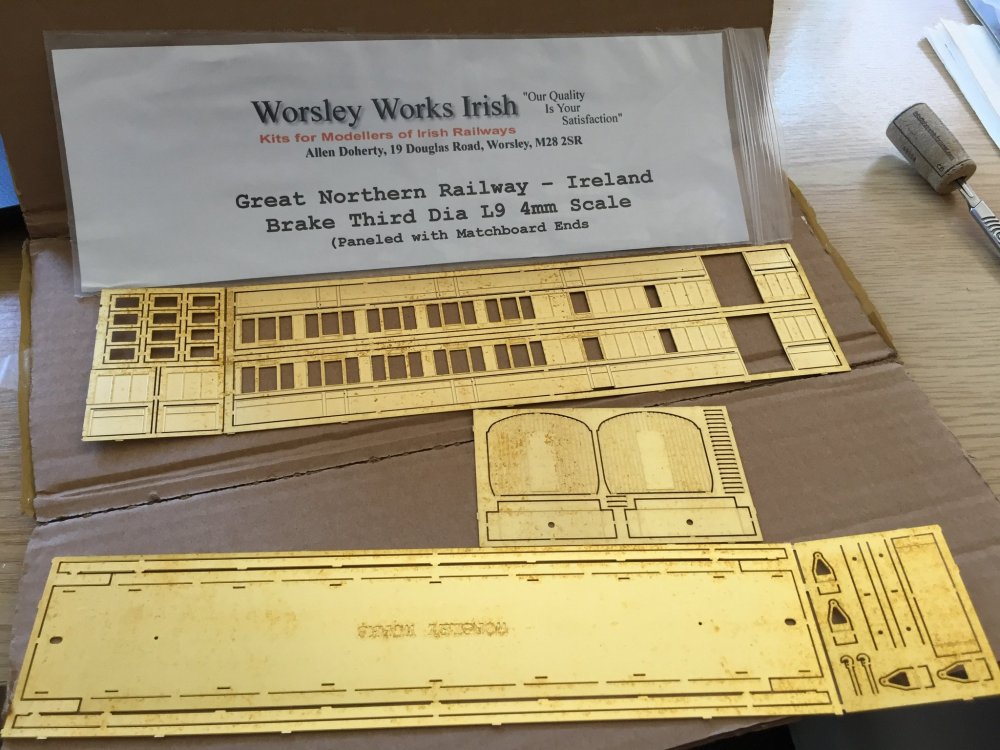 If Quarter 2, 2018 was a period of low productivity, then Q3 was, by my standards, positively 'foot to the floor'. However, it didn't turn out quite the way I had planned. The objective was to build another brake/passenger to serve as a through UTA coach from Belfast, to be attached to the Bundoran Express at Clones. Remember that I am modelling Pettigo on the Bundoran branch as though it, and other relevant lines, had stayed open until 1963 as a joint CIE/UTA operation. i had in mind one of those more modern (1930s onwards) GNR coaches with the recessed sliding van door. However, the choice appears to be quite limited as many were converted to run with the BUT railcars, which had no guard/luggage accommodation . Looking through the Worsley Works listing, I decided that a J4 brake/trio (3 classes) was appropriate. There are a number of photos of these coaches in service on the old Irish North West lines. On contacting Allan Doherty to order one, he told me that it was not currently available and might not be for the foreseeable future. He did however offer me a L9 brake/3rd, at a discounted price. I did some research and noted that the L9s were characterised by a very large luggage area, which didn't seem appropriate for a single through coach. I did a bit more thinking and decided that I would bump another project up the list: a representation of the 1.35 PM local from Pettigo to Enniskillen, which followed the Up Bundoran Express but served all stations to Enniskillen, all of them bring in Northern Ireland. My thinking is that this would be a UTA service. All photos show this as a two coach train. So, another look at the Worsley Works website suggested that a K8 third would be a suitable companion. So, back to Allan who agreed to sell me both the L9 and K8 at a discounted price. And this is where we start.....
