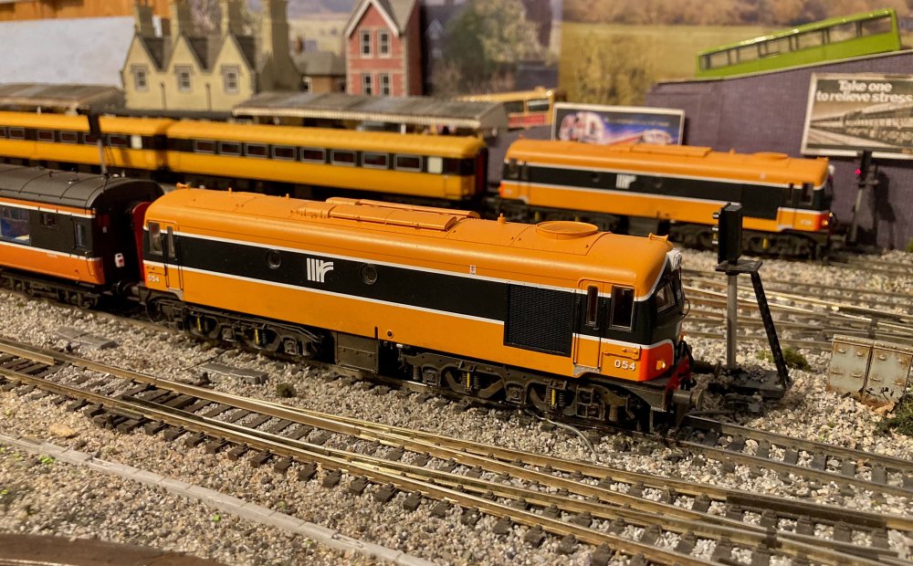 After encountering reliability issues with the original motor under Arrow railcar 2601+2602,I decided it was time to upgrade, A bargain purchase at Model rail Scotland of a Class 150 DMU enabled me to upgrade with ease,with the added bonus of interior lights and seating-(not possible on the original chassis) A built in speaker will allow me to transfer the original sound file onto the chip. Here are a few photos of the Arrow as she prepares to depart on an evening service to Kildare.