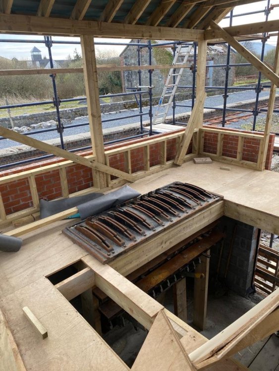 The lever frame has been placed inside the signal cabin and roof felt have now been completed, Next up are the windows and slates.- 432 replies