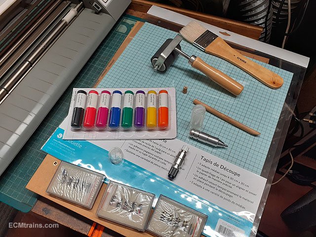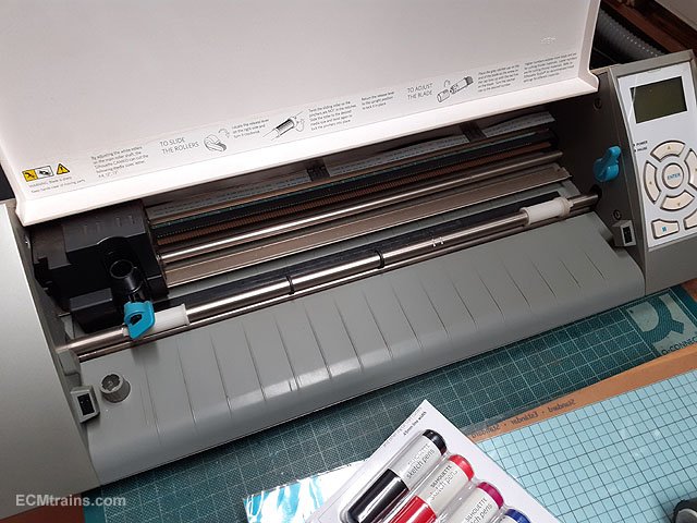 Silhouette Cameo Cutter;- I saw some interest in the Silhouette Cameo cutter in another thread and thought I'd post info here. My machine, it's an old model purchased back in 2015 or so. There is a new version now but pretty much the same thing. https://www.mdpsupplies.ie/silhouette-cameo/silhouette-cameo-5 Cover open, showing the carrier sheet traction wheels (white) on that silver drive shaft. The carrier sheet is clamped on these wheels and the drive pulls the sheet in and out as cutting proceeds. The cutting blade, it's a small rotating blade in a barrel, the depth of the blade is manually adjusted by rotating the white head in the barrel, full protrusion is about 1.5mm. The blade mounted in the traversing head. This is a MDF riser table I made for the carrier sheet- while cutting is proceeding I found thick styrene sheet would come free of the glue on the carrier as the sheet is pulled in n out over that curved front of the machine. 1mm thick styrene is the max that will fit in the machine. This is an old carrier sheet about to be pulled in. The carrier sheets last for several cutting sessions but becomes scored by the blade when cutting paper or thin styrene, also debris from cutting process messes up the glue and the sheet then needs replacement. Other bits- a set of color markers for plotting drawings on the machine, roller tool for pressing the work sheet to the carrier sheet, other tool/knife holder and engraver purchased on Amazon, and in the middle a pin picker for removing small cut bits from the carrier sheet. Underneath the bits is a new carrier sheet. Parts for a tin van cut from .5mm & .3mm styrene, the machine will not cut right through this thickness of material, several passes while adjusting the tool depth will almost go through, then finished by hand with a scalpel. The machine will cut through paper, vinyl, and very heavy paper card. Detail scoring on the parts. The software that comes with the machine is good quality, it has drawing tools to create the drawing to control the cutting and has all sorts of controls to aid the user in material selection and knife control. The machine also has registration control to load and line up pre-printed material to be cut. I use this software to cut only as I do all my drawing work in Autocad and import it into the Silhouette software. Some knowledge of cad programs is a great help, but it is relatively easy to get a grip of! Thats a rough introduction, if any questions post below....... Eoin.