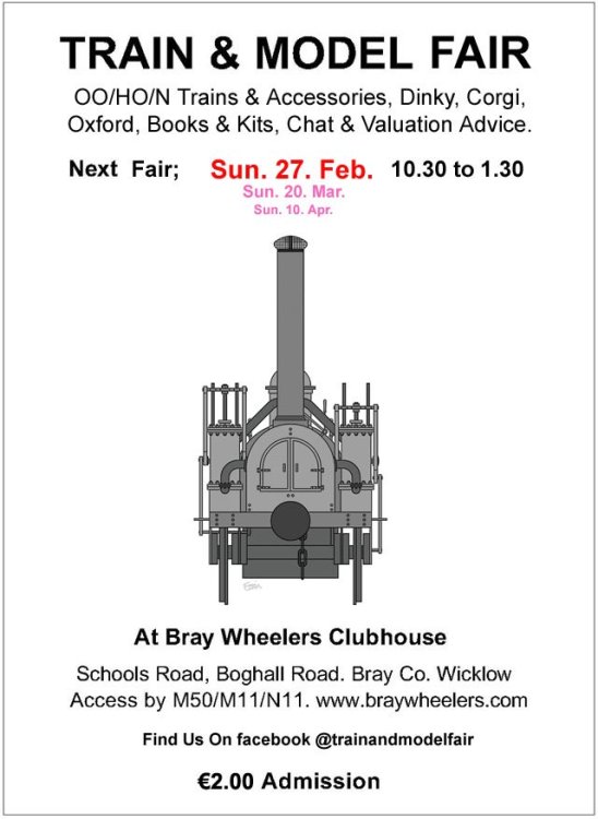9. The first of 2022 Fair dates;- Due to the current Covid situation please keep an eye on here for confirmation of the Fair going ahead. This year's flyer is sporting the 'Hibernia' in grey livery, one of the first locos to run on the Dublin & Kingstown Railway in 1834. Happy New Year.