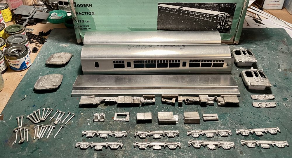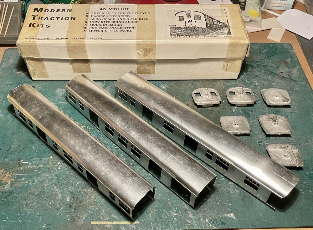 MTK supplies flat strips of aluminium sheet (without the folded edges) for the chassis, which are totally useless. I made my own chassis using 1mm and 0.5mm thick plasticard, with the MTK undergibbons cleaned up and glued in place. The MJT bogies have still not arrived so I used modified Hornby 2-BIL bogies (obtained as spares from eBay some time back) with 14mm wheels. I know they are not the correct type but they look very close. They were fixed with 8BA bolts and nuts. Cheers Darius
