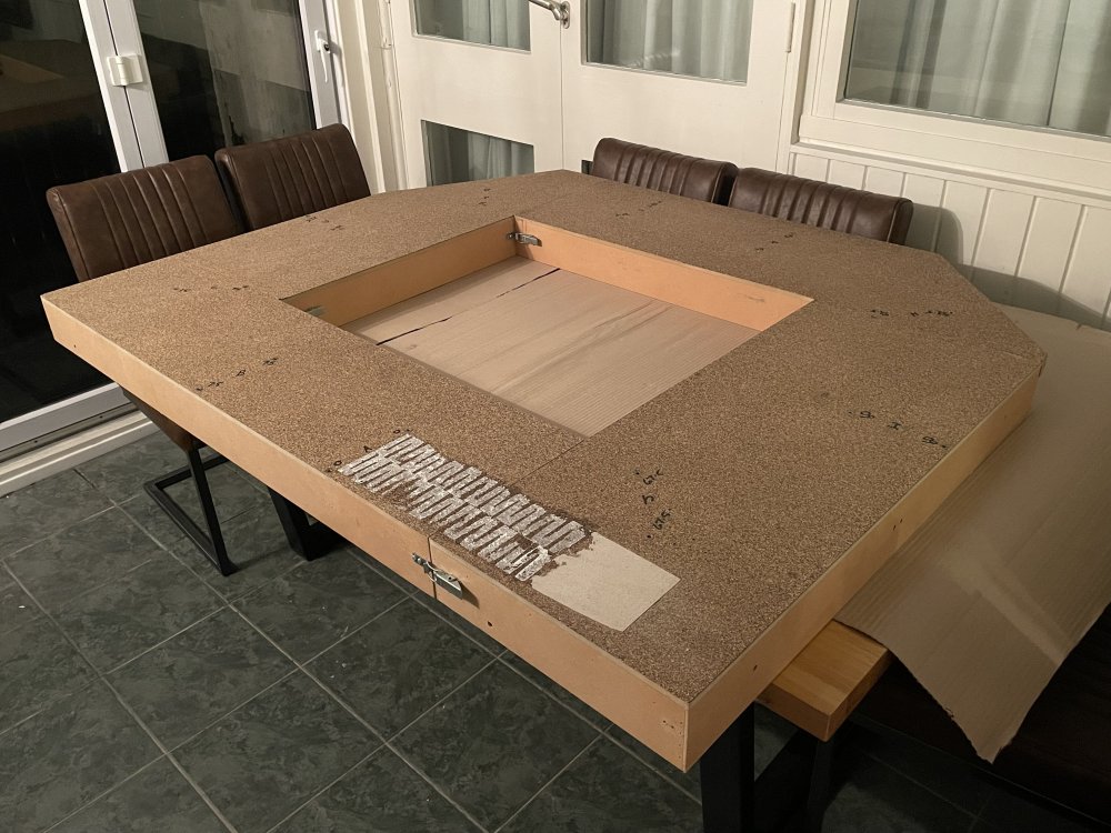 The Middlemark layout that I am building with a friend of mine in his large garden shed has hit an indefinite hiatus. As a result I have decided to start building my own layout at home using the baseboards that came with the Middlemark helix. Four boards clip together to form a layout 1.6m (5.3’) long by 1.27m (4.2’) wide. Reasonable for a roundy roundy and small enough to fit on the dining room table. I already have a layout plan:- I plan to use expanded polystyrene sheets to elevate the track level above the baseboard so as to enable the creation of embankments/cuttings, whilst keeping things light. The trackbed will comprise 2mm thick plywood glued to the expanded polystyrene base with a layer of cork on top. Removable lengths of ballasted track will cover the joints between the boards. The layout will be built to be dismantled into the four separate boards, which can be stacked vertically on a moveable rack (yet to be built) when not in use. Cheers Darius