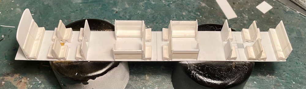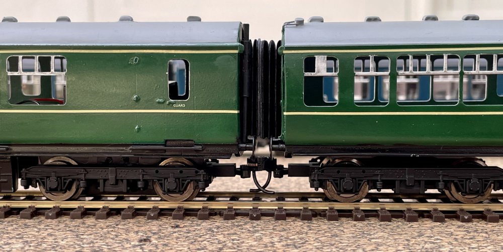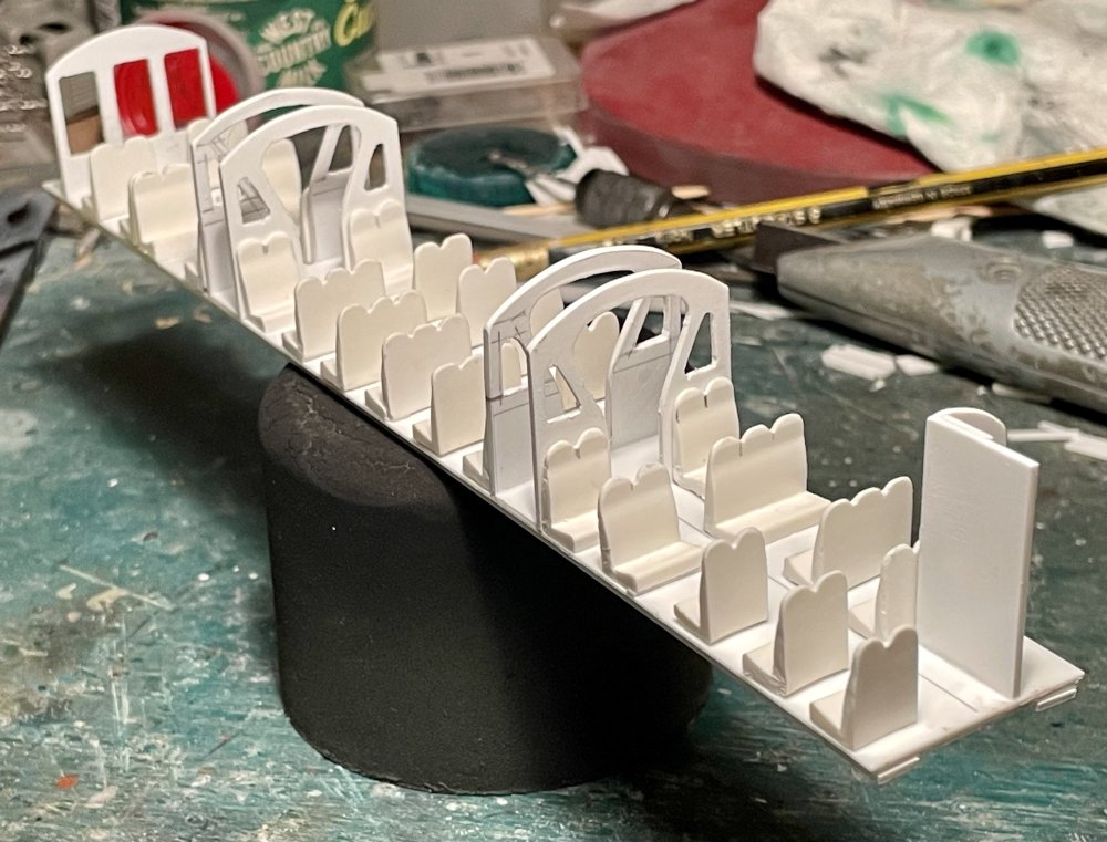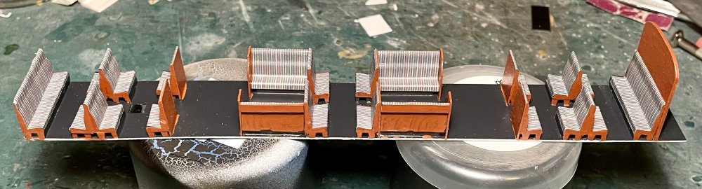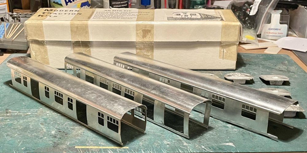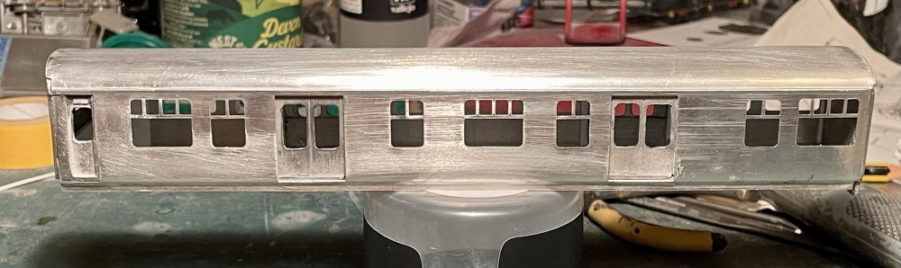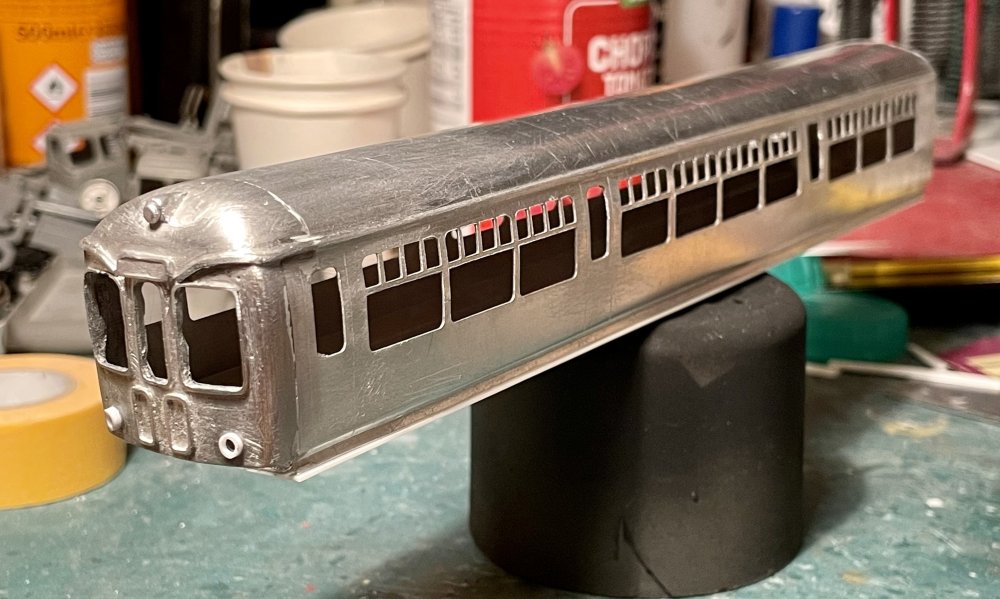Coach bodies primed. Brass wire handrails and door operating buttons fitted. Cheers Darius